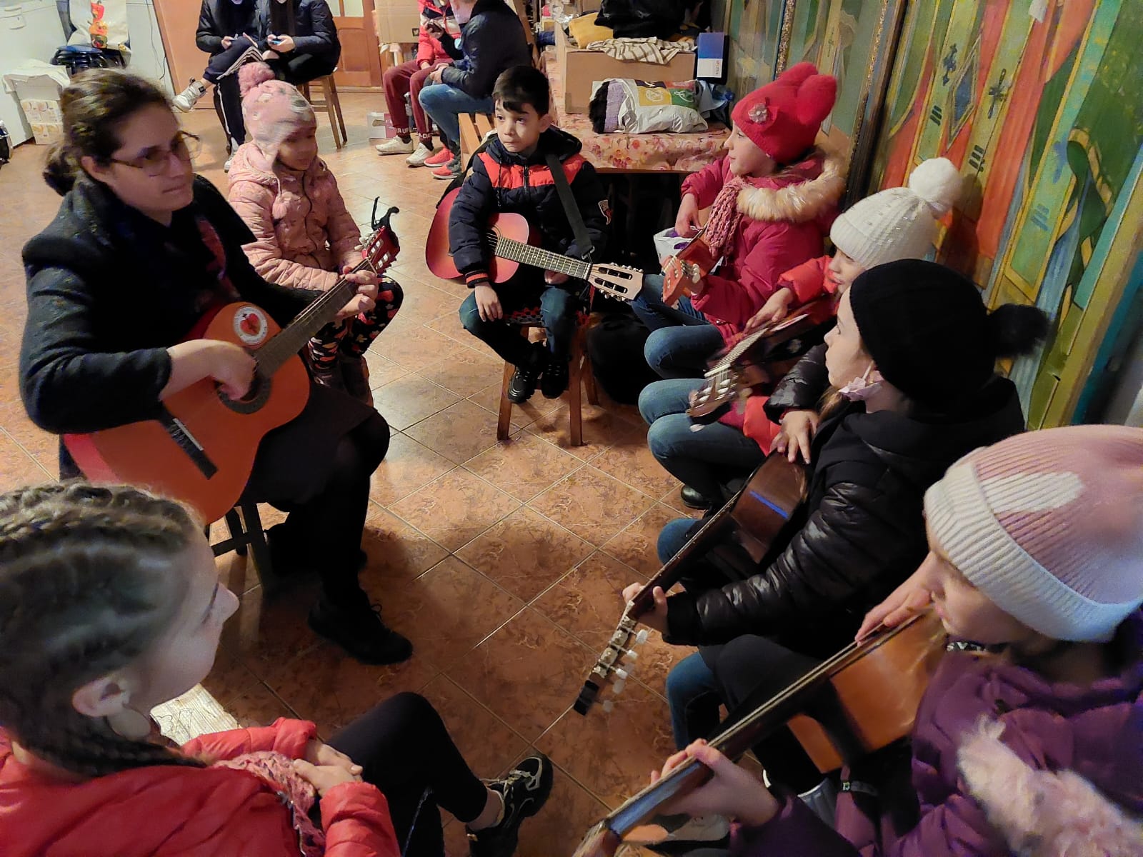 „Eu mi-am dorit niște lucruri când eram micuță, iar dacă acum există această posibilitate de a face o activitate într-o comunitate, profităm de ea. E greu să ajungi la oraș să poți să-ți permiți să faci un curs de chitară, am adus cursul de chitară în sat. Am adus la început un copilaș care făcuse și el două trei cursuri de chitară și am văzut că învață repede primele tehnici, iar după aceea am început să studiem noi, pentru că aveam nevoie ca să le explicăm copilașilor mai departe. A venit o fată care știa foarte bine să cânte la chitară și cu ajutorul ei am studiat și i-am învățat. Am făcut-o cu mare drag. Am făcut-o din toată inima, am făcut tot ceea ce ne place”, mai spune preoteasa.
