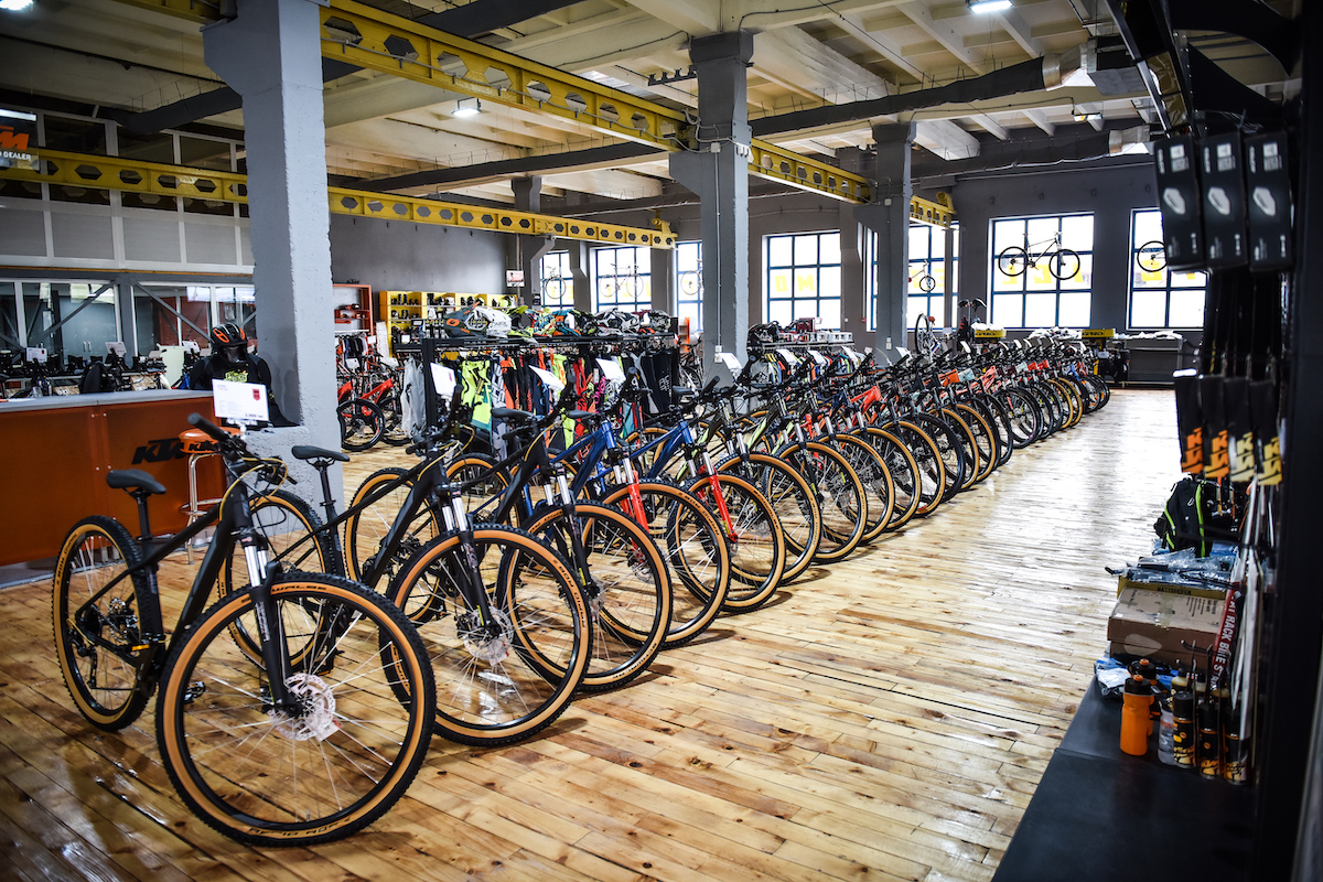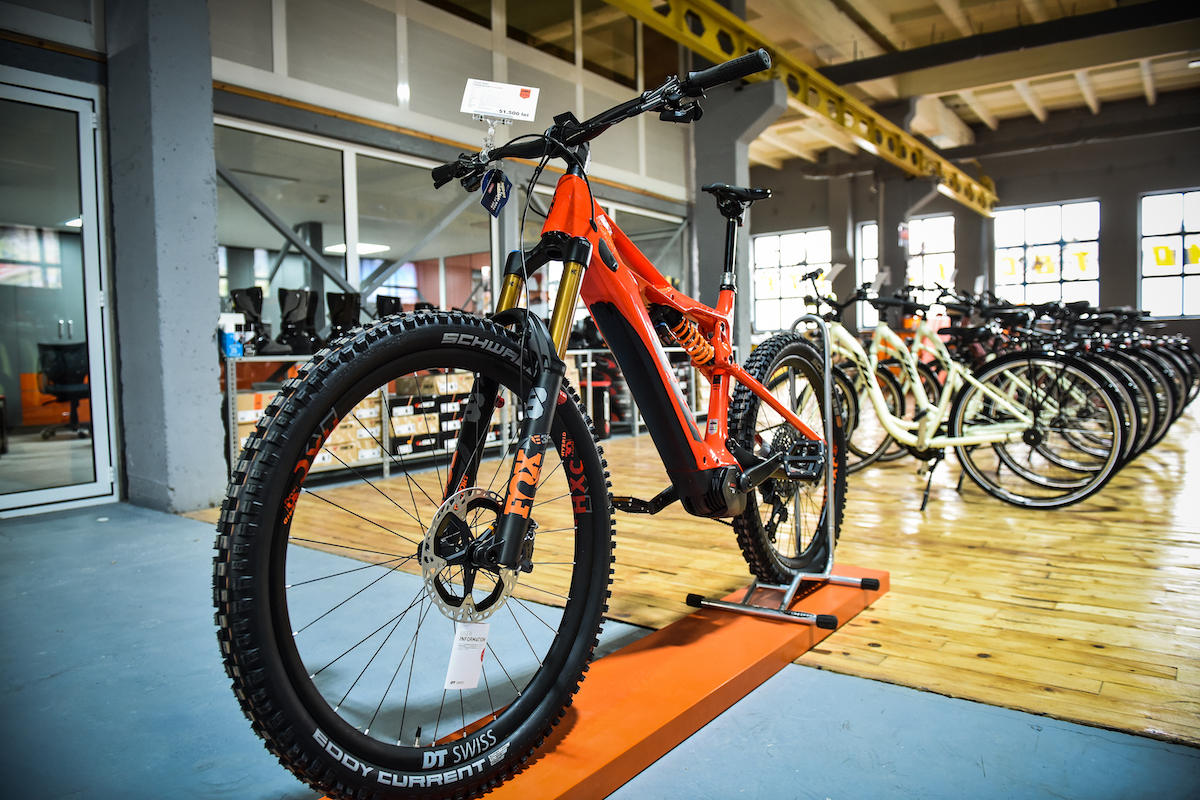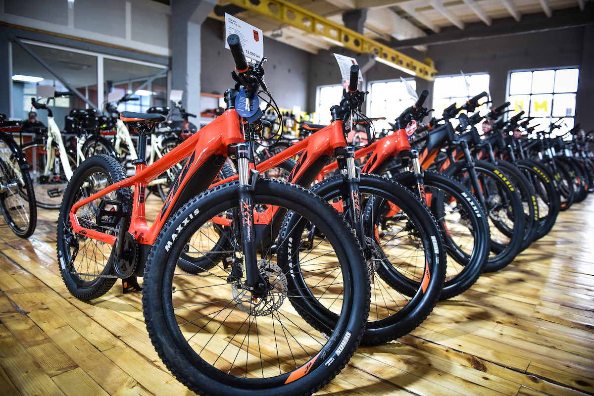 Un spațiu imens, plin de biciclete. Biciclete enduro, biciclete de oraș, biciclete pentru copii, echipamente, o sumedenie de accesorii și, mai ales, biciclete electrice (de la cele enduro, la all-mountain) fac parte din oferta magazinului deschis de câteva săptămâni într-un spațiu aflat la câțiva pași de centrul istoric al Sibiului.