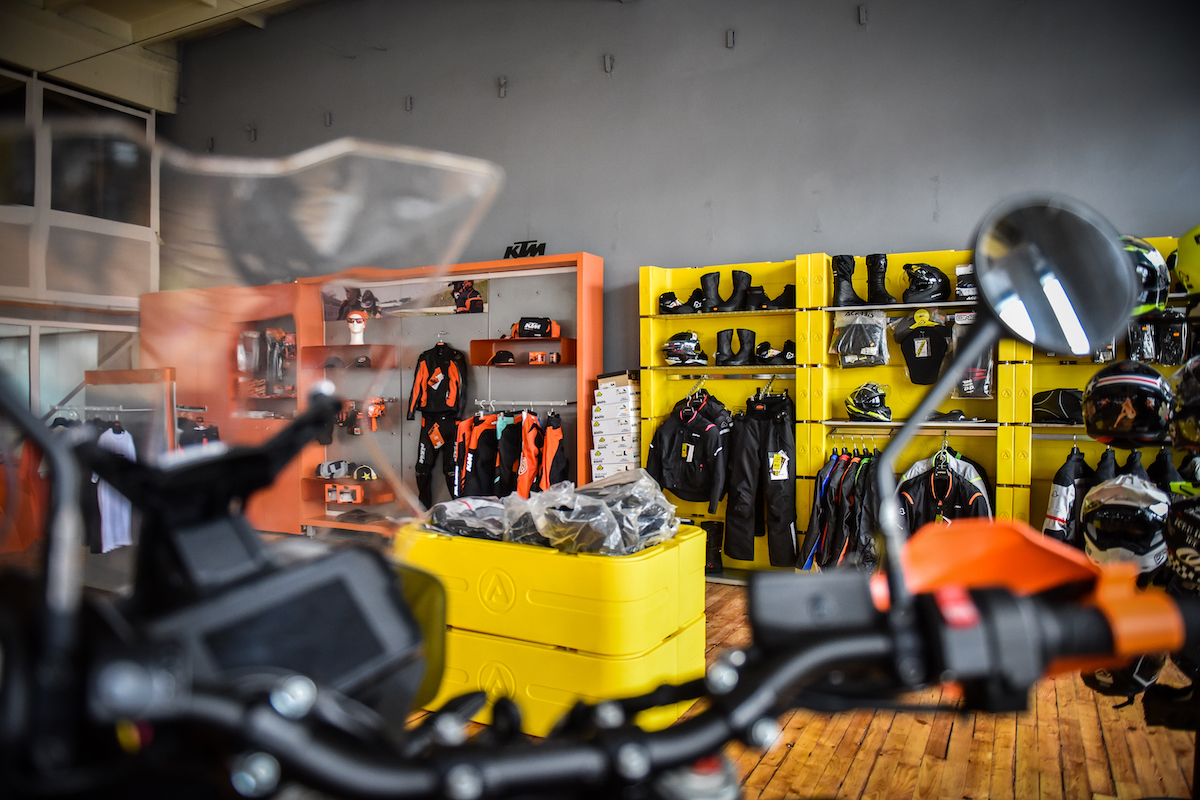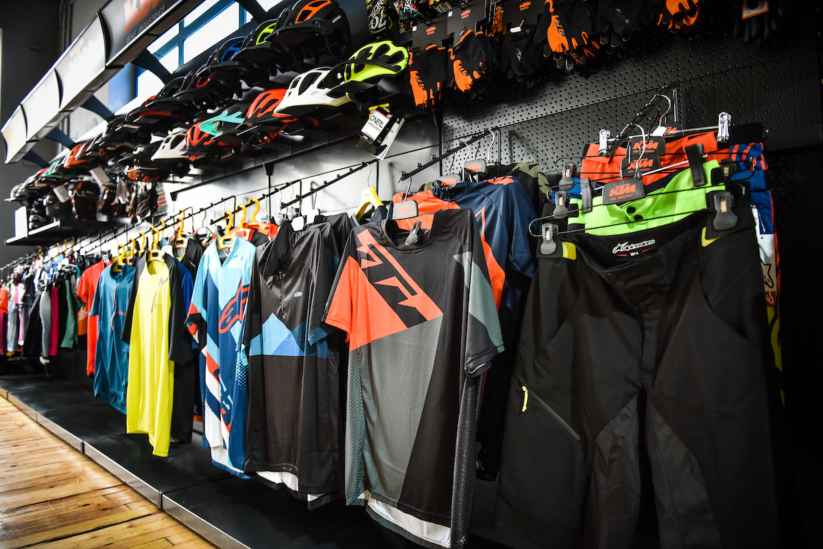 În noul magazin KTM pot fi găsite de la cizme SiDi (considerate cele mai bune din lume pentru motociclism), la echipamente pentru circuite de viteză, pentru adventure și culminând cu gama de echipamente enduro. ”Suntem primul magazin din Sibiu care a început să pună în vânzare echipamente pentru enduro. Mai avem și o zonă de moto-enduro, pentru că acestea sunt începuturile noastre ca și activitate în Sibiu”.