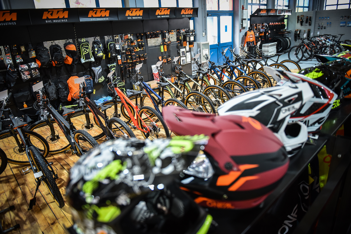 Dintre bicicletele expuse în noul magazin, la loc de cinste este expus un model botezat KTM Prowler Exonic. Este vârful de gamă în ceea ce privește e-bike-urile enduro produse de KTM, prețul acesteia fiind de 51.000 de lei. Are schimbător de viteză wireless, la fel ca și sistemul pentru reglarea poziției șeii, toate celelalte specificații incluzând produse de top. Furcă Fox 38 cu o cursă de 180 de mm, amortizor spate Fox DHx2, motor Bosch CX din noua generație sau bateria inserată în cadru cu o capacitate de 625 Wh fac parte din aceste specificații.
