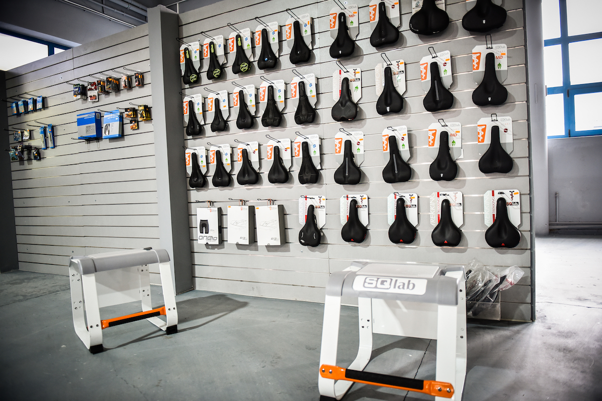 În noul magazin pot fi găsite numeroase piese și accesorii necesare practicării acestui sport. Printre ofertele evidențiate sunt șeile și manșoanele de la SQlab, de exemplu. ”Au fost primii producători care au pornit de la ideea că – la fel ca și încălțămintea, de exemplu – și dimensiunile bazinului diferă de la om la om. De aceea avem aparate de măsurat bazinul, iar pe baza acestor măsurători recomandăm șaua potrivită fiecărei persoane. O șa personalizată schimbă radical în bine experiența mersului pe bicicletă”, explică Angelo.