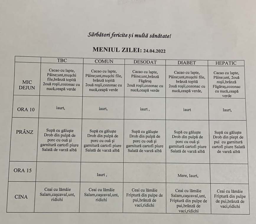 Tag-uri: oua rosii , sputalul CF , meniu de pasti , meniu pacienti , cozonac , Spitalul Județean , spitalul TBC ,