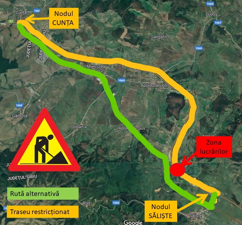 Pentru a permite executarea acestor lucrări traficul a fost închis complet pe sensul Sebeș - Sibiu, între nodurile Cunța și Săliște, iar circulația se desfășoară deviat pe DN1.