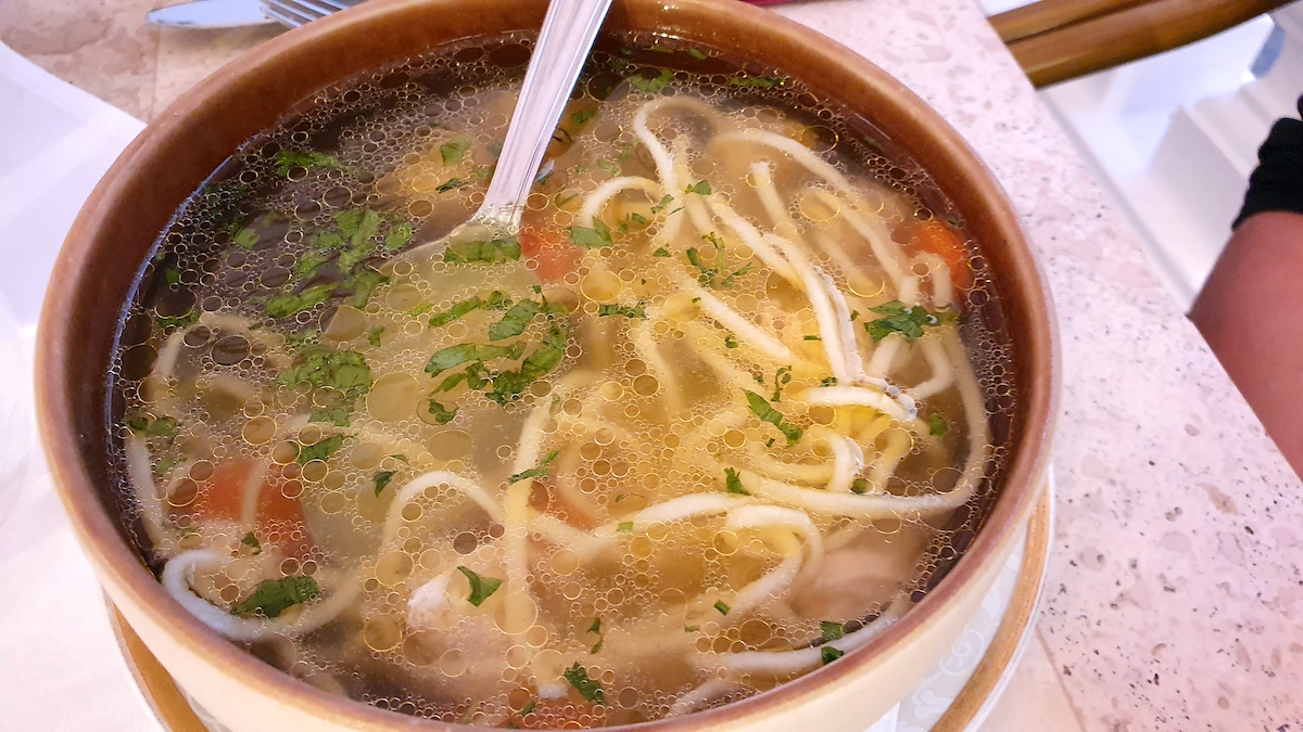 Năutul cu sfecla coaptă a fost delicios, chiar dacă ar mai fi mers câteva ridichi alături. Supa de găină cu tăiței de casă, la fel – gustoasă, deși dacă ar fi să îi caut un cusur, carnea îi era ”de la Metro”.
