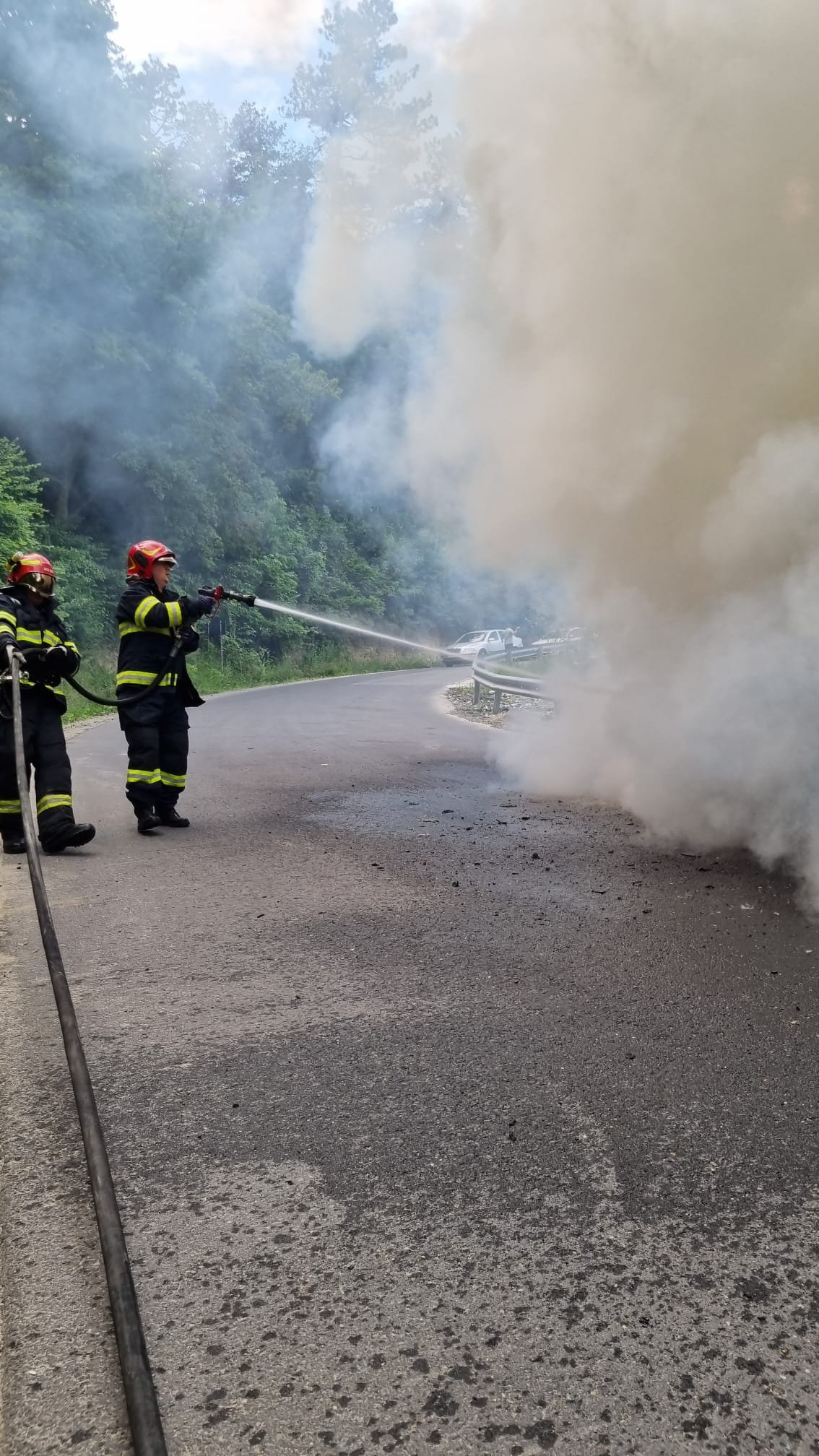 Pompierii militari ai Detașamentului Mediaș au fost solicitați să intervină de urgență pe drumul ce leagă Șeica Mare de Șeica Mică pentru stingerea unui incendiu izbucnit la un autoturism aflat în mers, transmit reprezentanții ISU Sibiu. La sosirea forțelor, incendiul se manifesta generalizat la întreg autoturismul. Cauza probabilă de izbucnire al incendiului a fost determinată de un scurtcircuit electric produs la compartimentul motor.