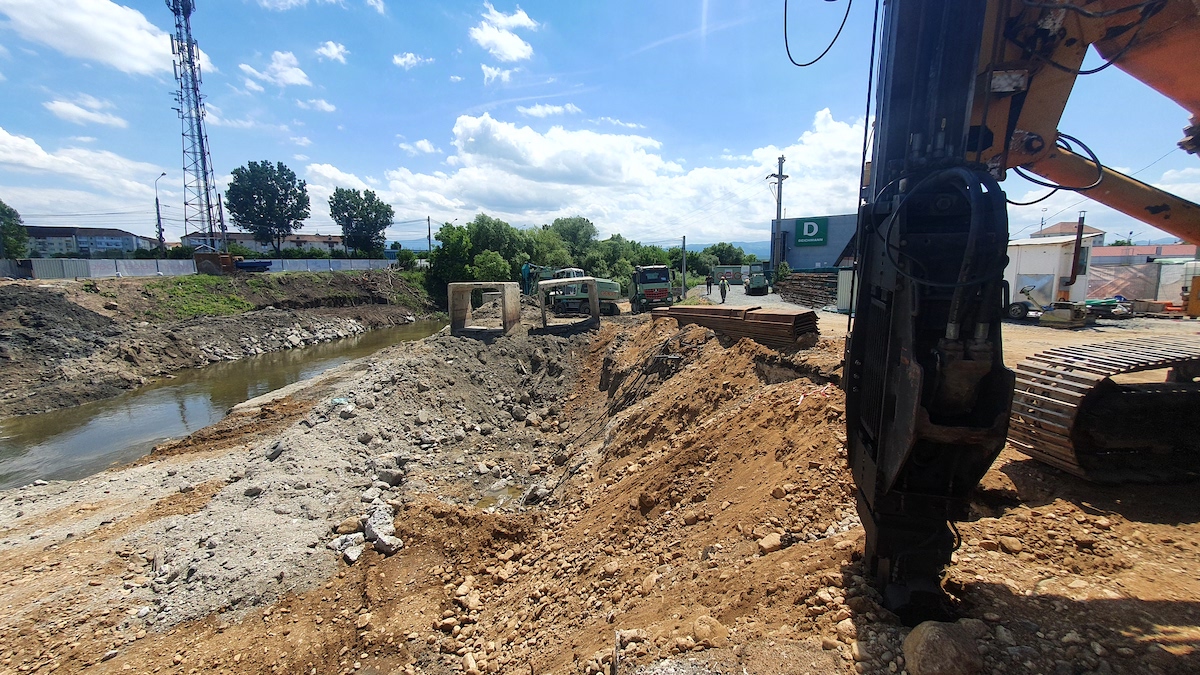 Pentru a preveni astfel de probleme și la piciorul dinspre oraș al podului care urmează a fi redat traficului, antreprenorul general arată că a fost schimbată soluție. ”În partea dinspre oraș a podului, am schimbat soluția. Facem foraje și construim piloți forați”.