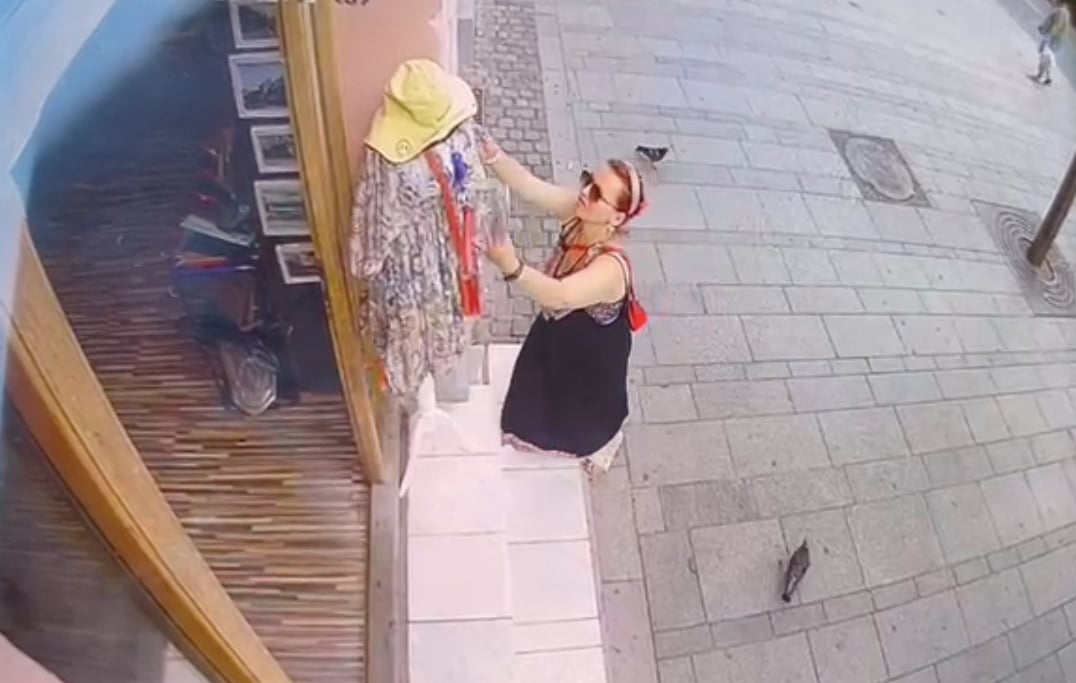 Femeia filmată în cursul zilei de ieri cum își însușește niște bunuri de la intrarea într-un magazin din centrul Sibiului, a returnat pe ascuns obiectele furate.