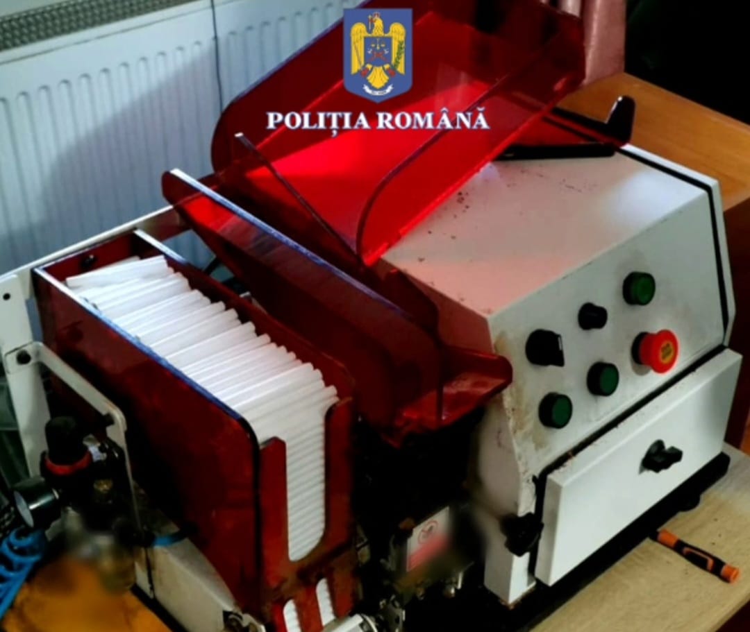 De asemenea, au fost descoperite şi ridicate 1.860 de kilograme de tutun mărunţit, 992 de kilograme de frunze de tutun, 28.534 de ţigarete confecţionate artizanal, 6 aparate pentru confecţionarea ţigaretelor, 3 maşini industriale pentru tocat frunze de tutun, 5.100 de etichete autocolante inscripţionate, 2 laptopuri, 1 DVR, telefoane mobile, precum şi înscrisuri utile cauzei.