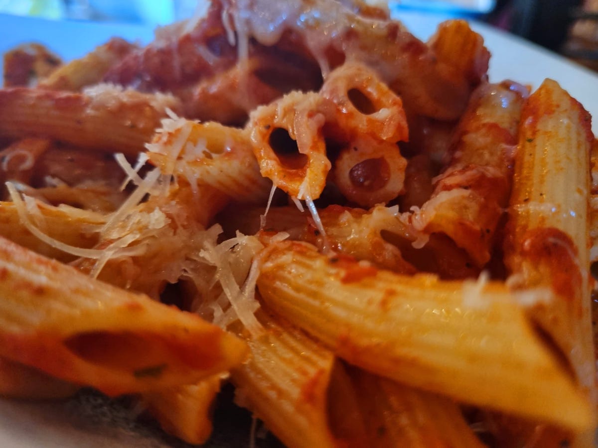 Gustul lor era bun, însă senzația de a vedea o crustă de paste și parmezan deasupra nu a fost deloc plăcută. Era ca ciorba de fasole servită în pâine, cum se face în unele restaurante. Scoți capacul rece și înăuntru găsești ciorba caldă.
