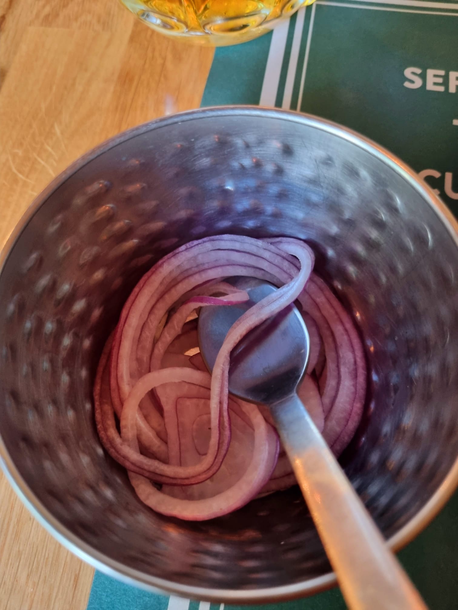 Gulyás-ul a fost și el un preparat bun, adaptat bine preferințelor culinare ale românilor, adică nu chiar atât de picant ca în Ungaria. De notat ar fi și porția de ceapă, care a venit fără să o fi cerut în mod explicit. Dar nu erau mai mult de trei felii, subțiri, așa că nu a fost paguba prea mare, mă gândesc.