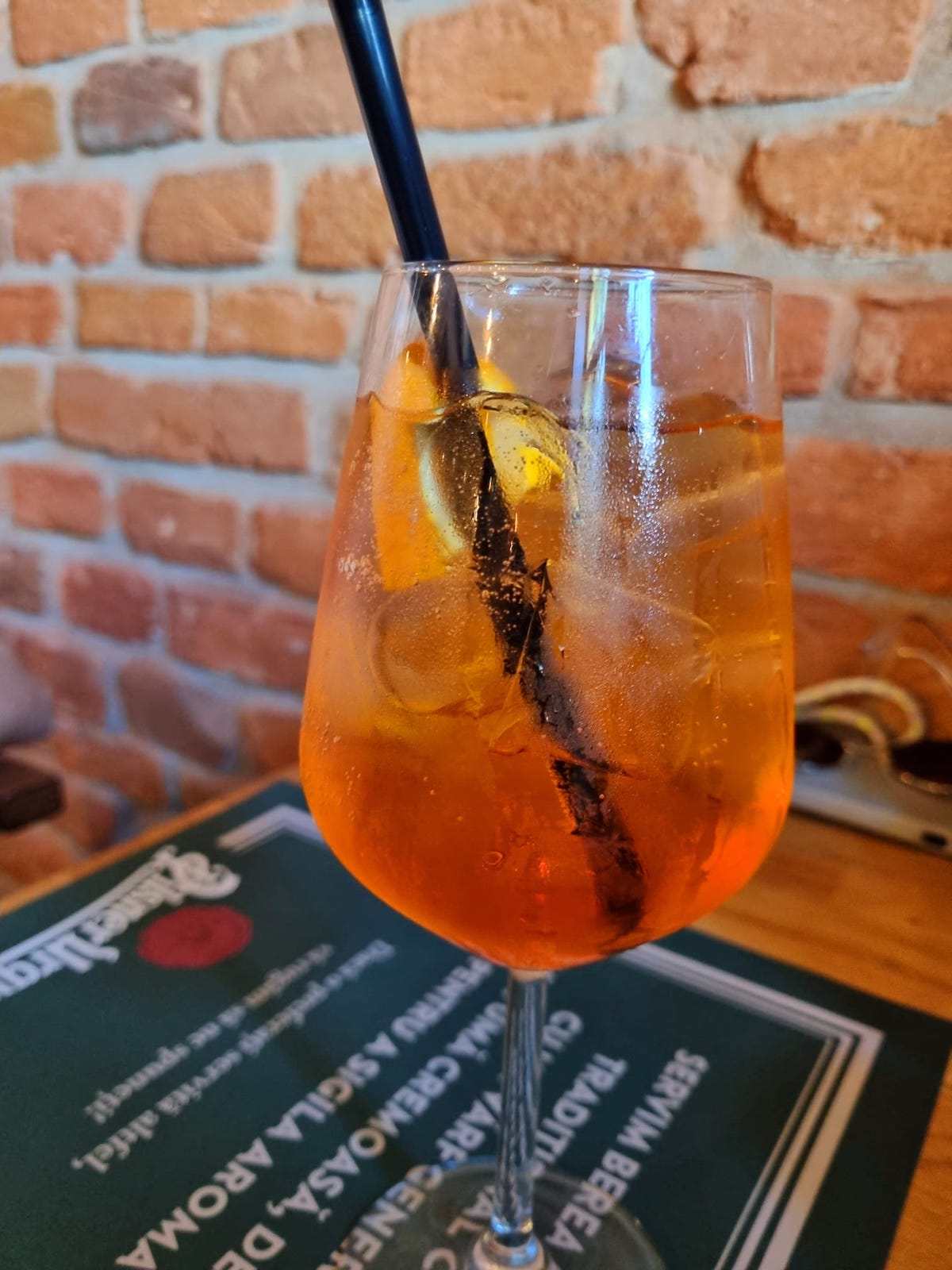 O altă problemă am identificat-o la Aperol spritz. Probabil că barmanul a rămas fără Aperol, pentru că în pahar era numai gheață, mult prosecco și chiar puțin, de decor, Aperol, iar gustul nu era cel care trebuia.