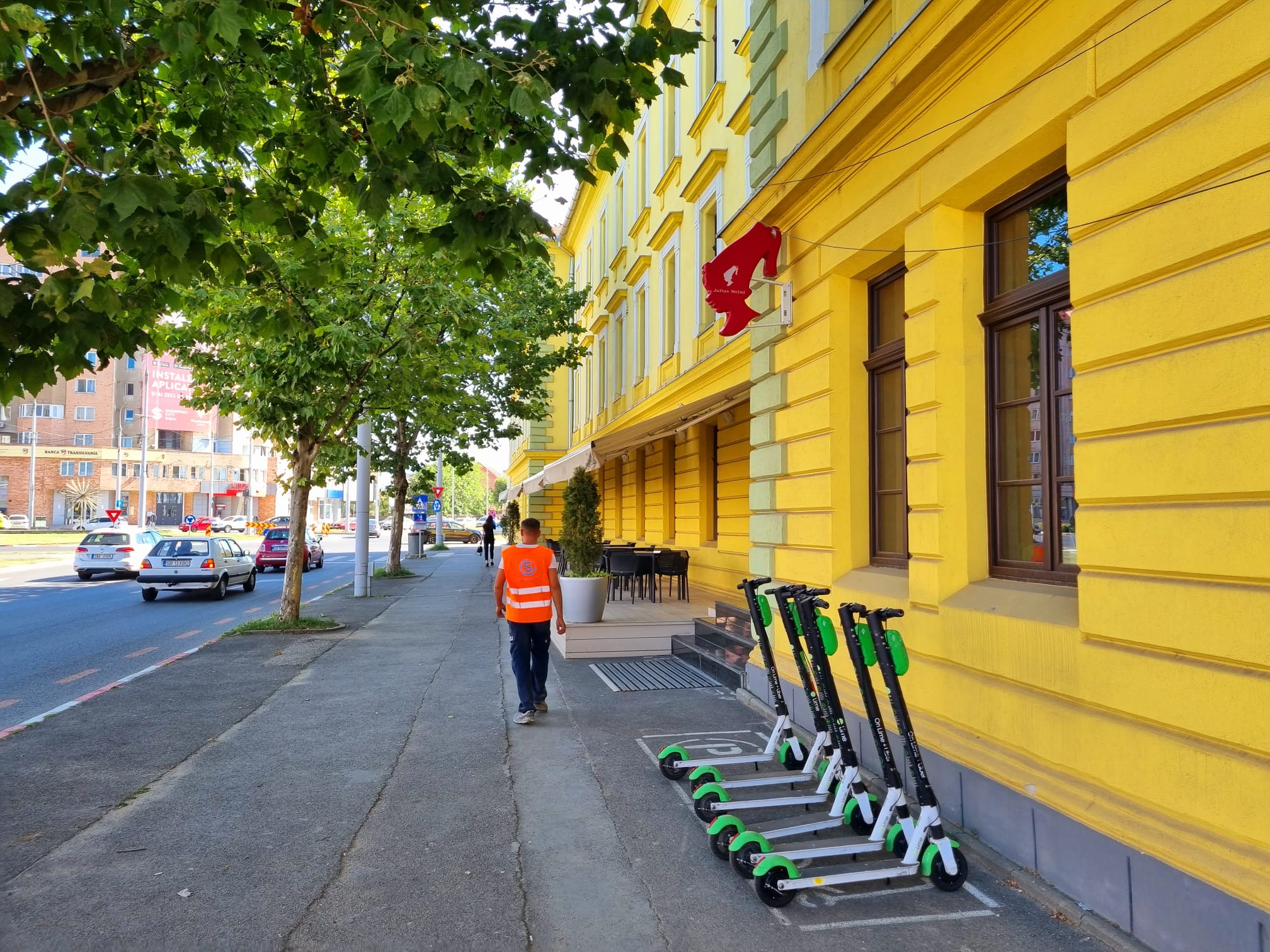 De altfel, terasa asta nu are nicio noimă. Nu m-ar încânta defel să stau pe trotuar, între mașinile care zburdă pe patru benzi și cele care fac drifturi în giratoriu. Era și goală la ora amiezii la care am fost noi.