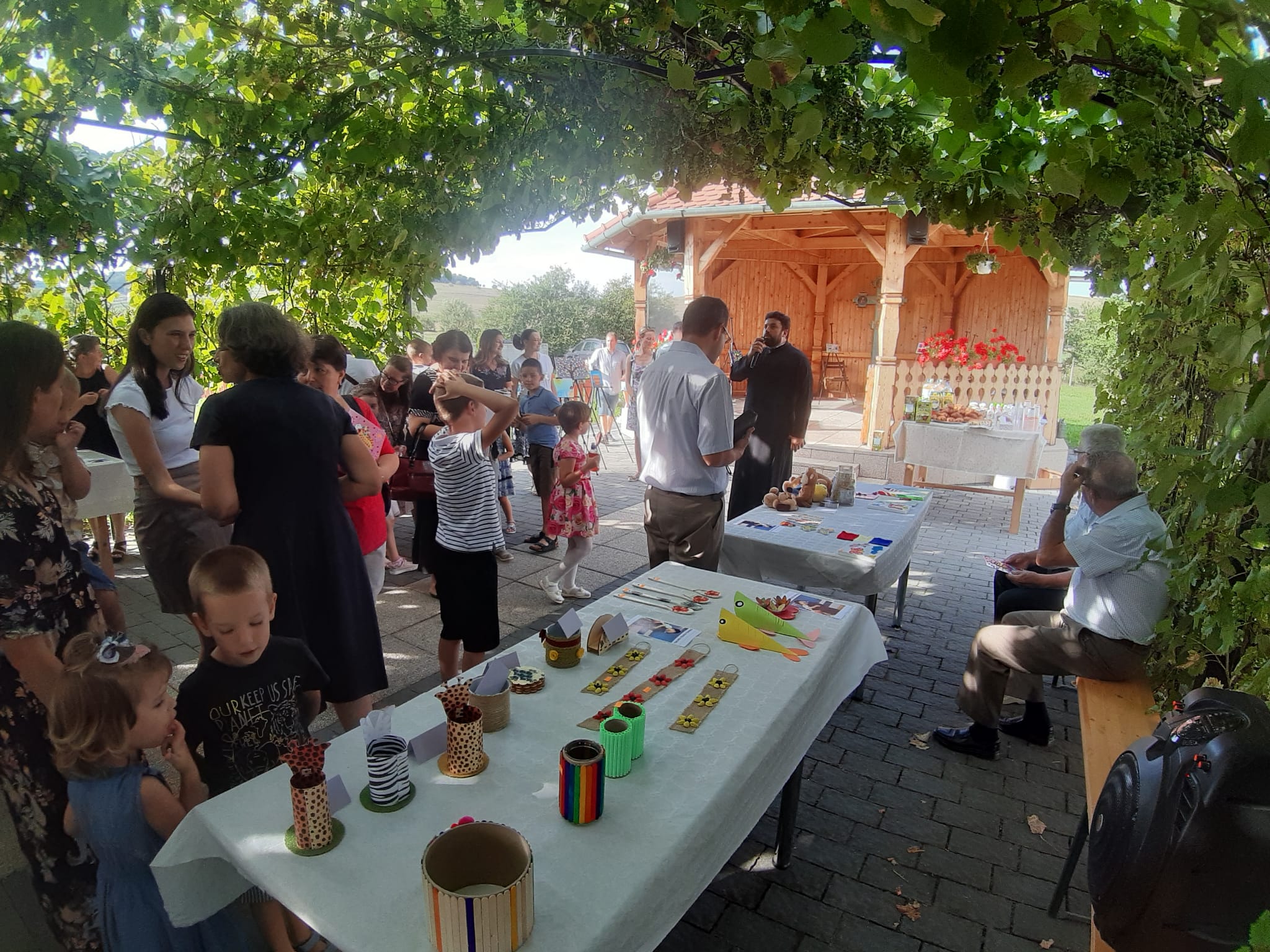 În curtea bisericii Buna-Vestire din Cristian, sub umbra viței de vie, într-un peisaj bucolic, sub privirea și binecuvântarea ocrotitoarei parohiei, Maica Domnului, copiii au avut ocazia să își prezinte și să vândă creațiile din timpul vacanței. A impresionat mobilizarea lor plină de seriozitate, prezența vioaie în spatele meselor frumos împodobite, cu chipurile pline de zâmbete și încântare. Cine știe, poate unii dintre ei își descoperă astfel noi talente, aptitudini și vocații, pe care le vor valorifica în viitoarele lor cariere, spre bucuria părinților.