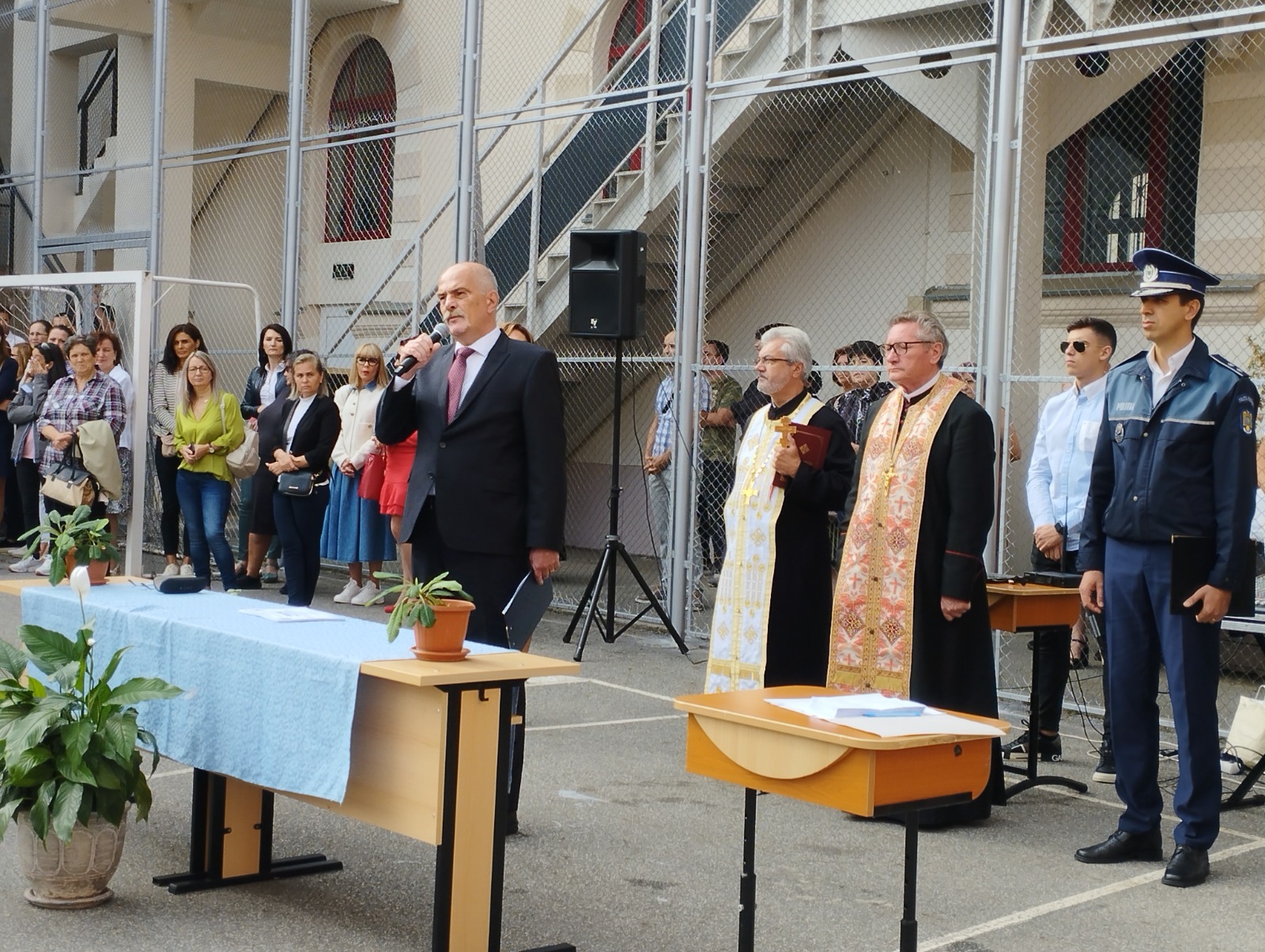 „După o vacanță bine-meritată și probabil mai intensă, pentru că a fost mai scurtă ca de obicei, începem astăzi cursurile anului școlar 2022-2023. Vă urez bun venit înapoi la școală și vă doresc din tot sufletul să aveți parte de un an școlar mai bun, cu rezultate excepționale, pe măsura așteptărilor care stau în fața noastră. Doresc în primul rând să le urez bun venit celor mai tineri elevi, de clasa a V-a, care își încep cariera de „lăzărist” de astăzi, 5 septembrie 2022”, și-a început discursul Negrea.