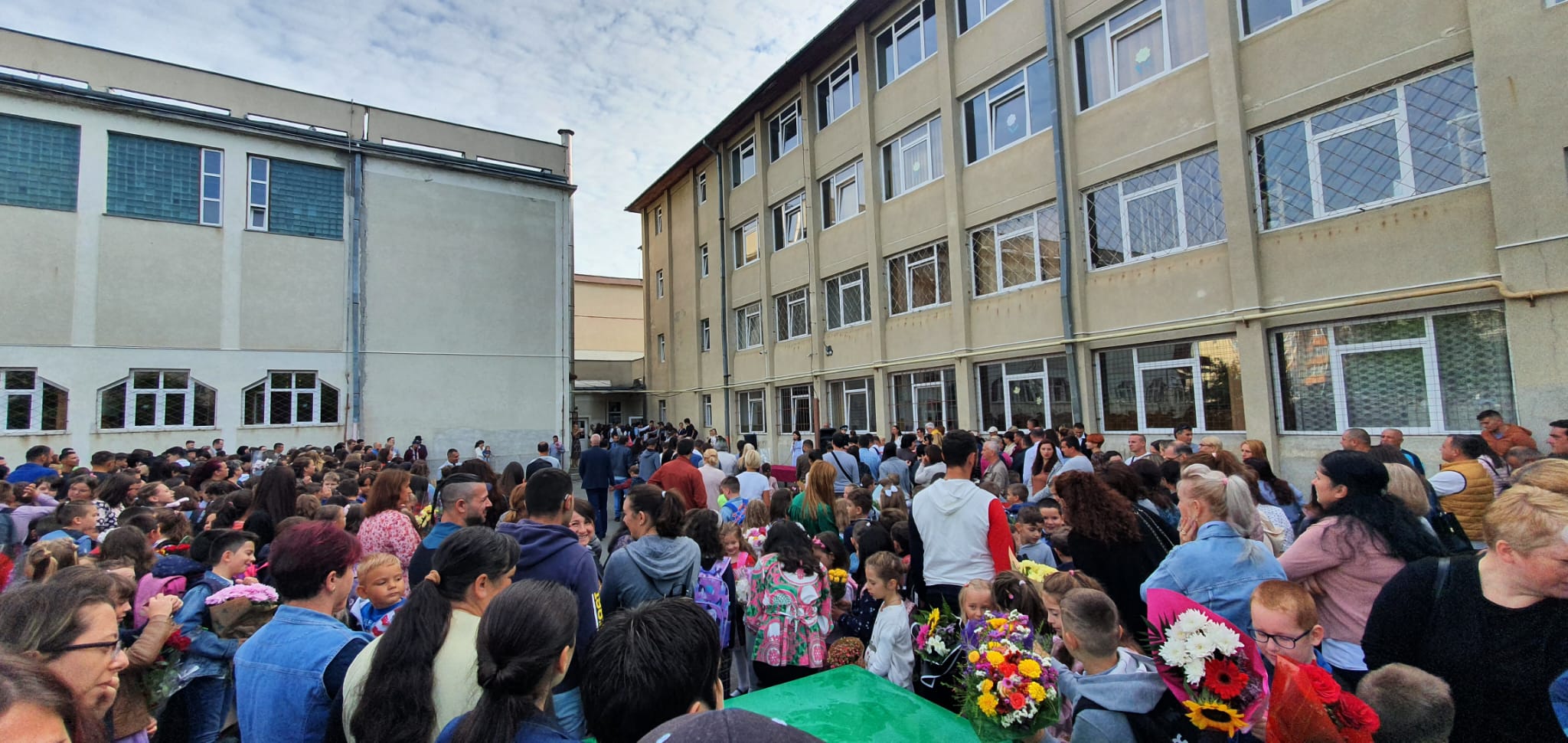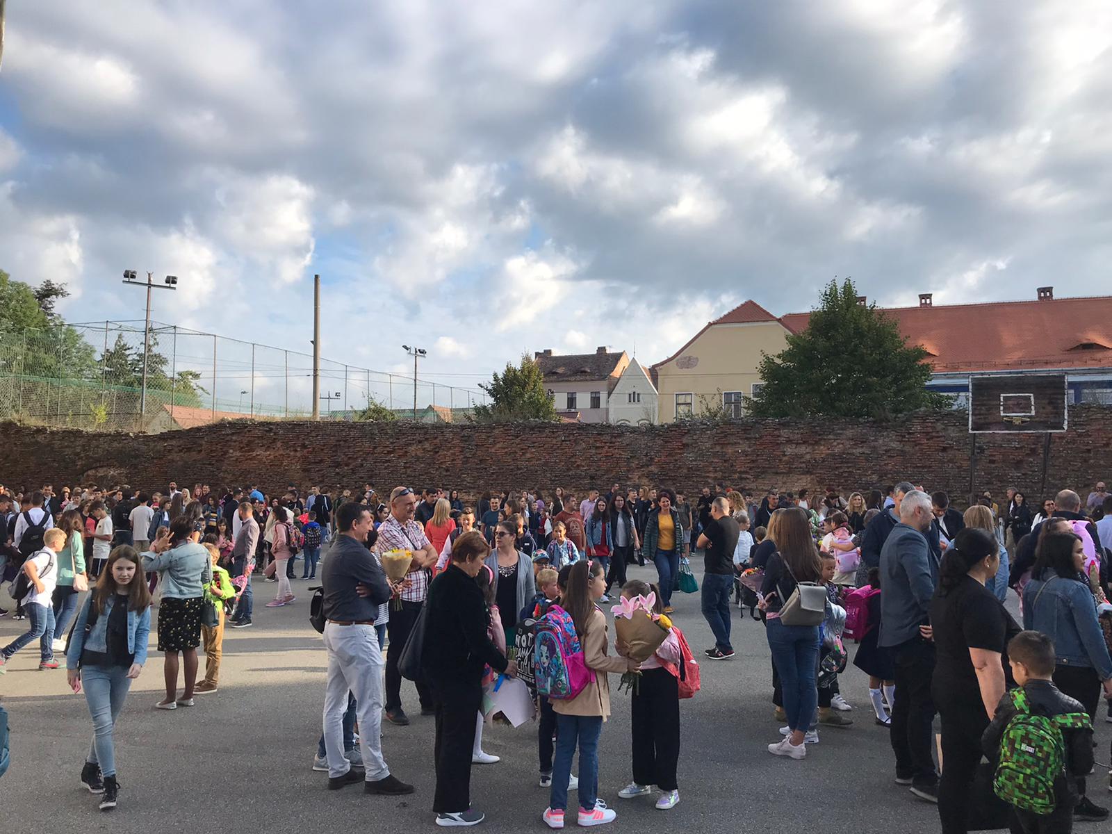 Aproape de ora 9.00, curtea Colegiului Național Octavian Goga devenea încet, încet neîncăpătoare. Flori, părinți, copii și bucuria revederii au dat viață dimineții de 5 septembrie.