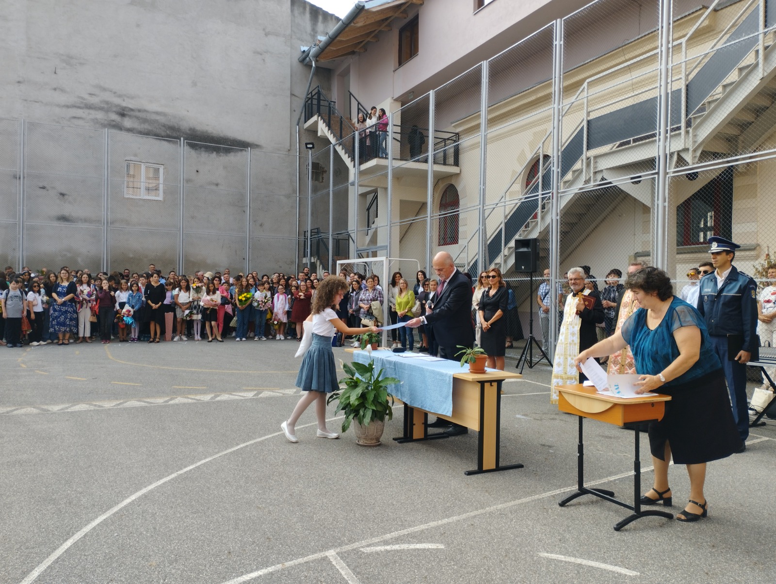 În cadrul festivității de deschidere a anului școlar, au fost premiați mai mulți elevi care au obținut rezultate deosebite în anul trecut. Directorul a ținut să-i invite pe aceștia în față să-și ridice diplomele și plicurile cu bani, menționând că, dintr-o eroare, aceștia nu au fost menționați la finalul anului trecut.