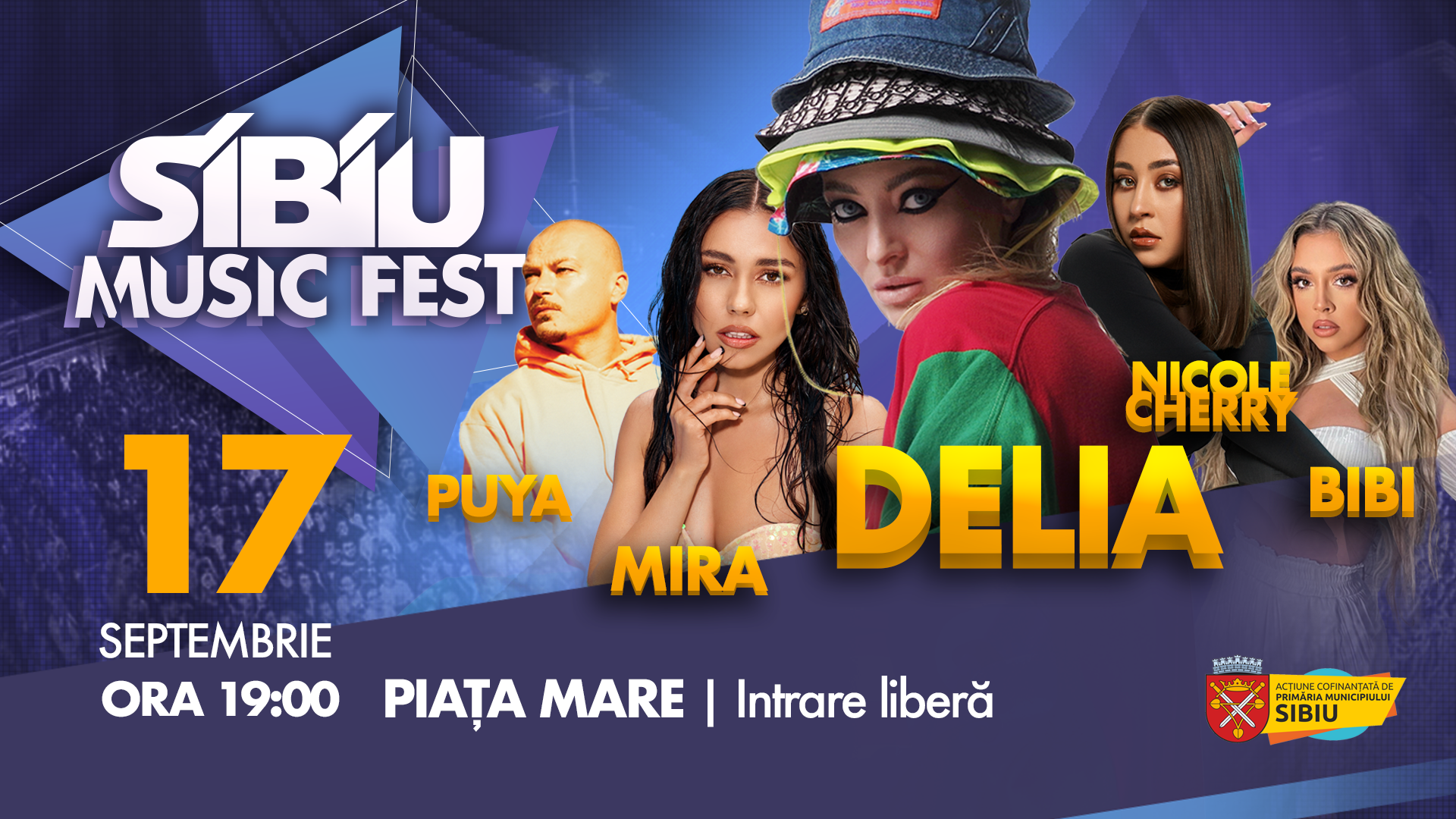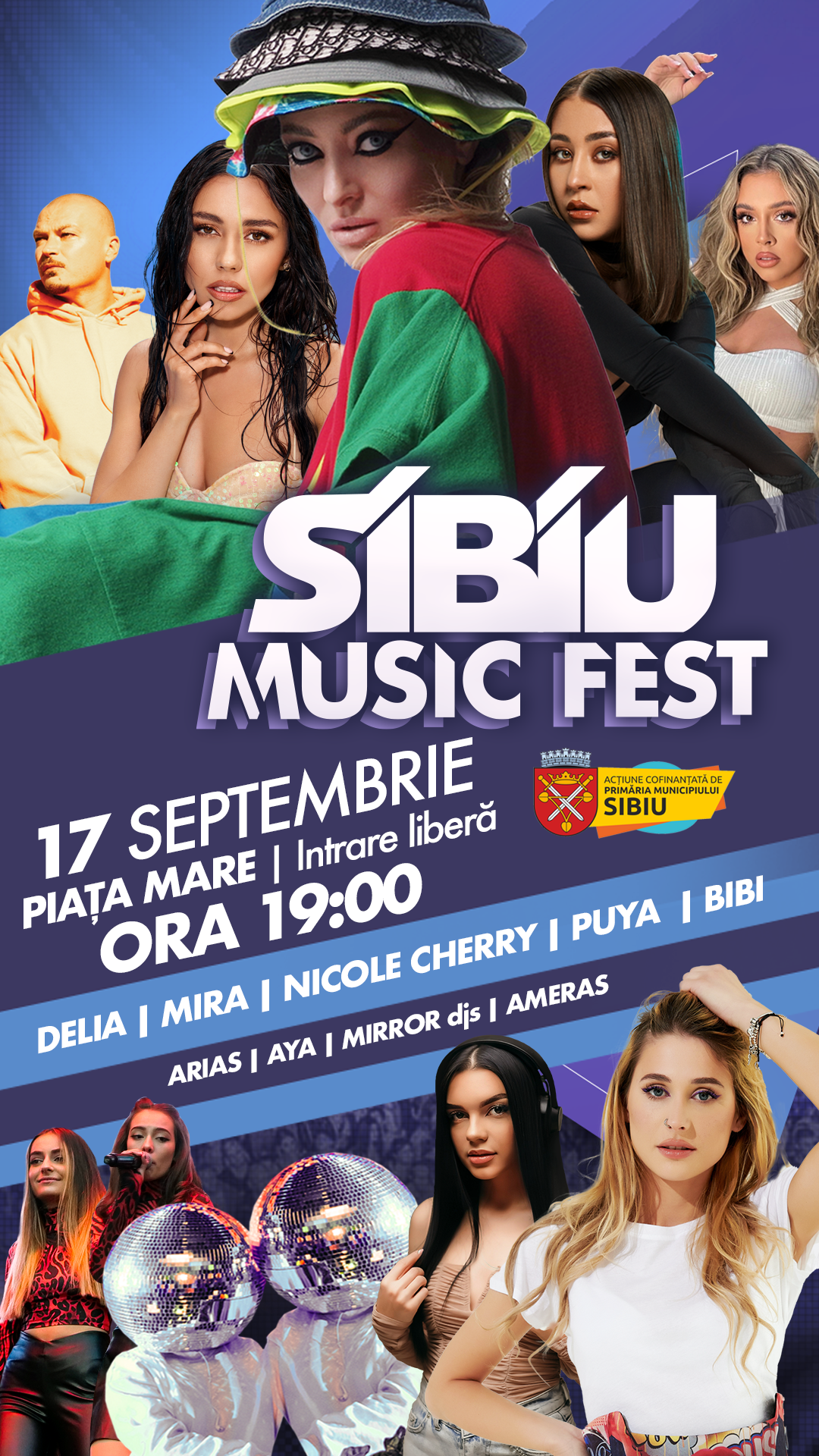 Invitații acestei ediții Sibiu Music Fest sunt: DELIA , MIRA, NICOLE CHERRY , PUYA , BIBI , ARIAS,AYA , AMERAS si MIRROR djs iar intrarea este liberă pentru ca toţi sibienii să se poata bucura de sărbătoarea oraşului lor.