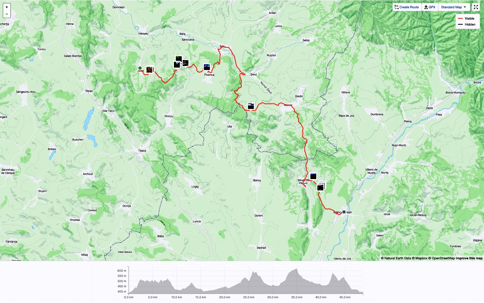 Diferența de nivel pe întreg traseul a fost de puțin sub 1.000 de metri. Cu consumul de baterie n-am avut nicio problemă, în schimb – din cauza greutății bicicletei – porțiunile cu noroi nu au putut fi ocolite luând ”țoacla” în spinare.