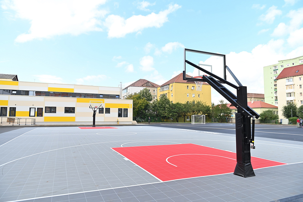 Curtea școlii a fost complet reabilitată. Pavajul a fost refăcut și s-au amenajat două terenuri de sport, unul pentru handbal și unul pentru baschet. Terenul de baschet a fost amenajat cu suprafață sintetică modulară de înaltă performanță și a fost dotat cu sisteme de baschet ajustabile pe înălțime.