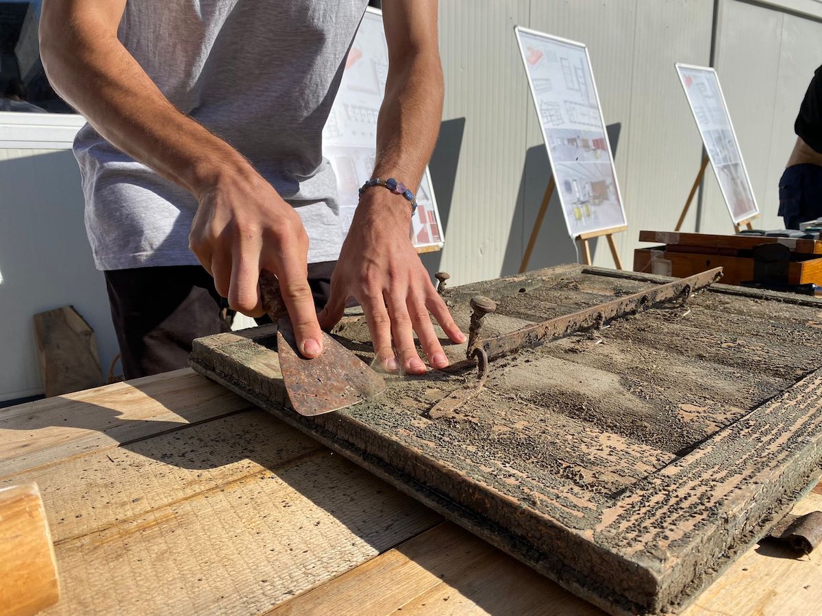 Primul atelier a început miercuri, 14 septembrie, și este dedicat restaurării lemnului. „În cadrul acestui program voi restaura obloane tradiționale săseșto împreună cu cei doi colegi ai mei. Prin restaurare prelungim viața unui obiect, respectiv în acest caz a unui oblon, acesta este foarte vechi, după cum se și vede. Conform principiilor restaurării am făcut mai întâi niște teste preliminare și în colaborare cu colegii mei am ajuns la concluzia că trebuie îndepărtat tot stratul pictural, curățat până la lemn, restaurare metal, după care se face din nou integrarea cromatică, respectiv vopsitul. Cu drag le vom arăta oamenilor cum se face, eu sunt sculptor, am adus și trusa de sculptură cu mine, cine dorește poate să vină și eu le explic tot ceea ce știu, va fi o colaborare cu toată lumea”, a spus Mircea Hanea, restaurator al Muzeului Astra.