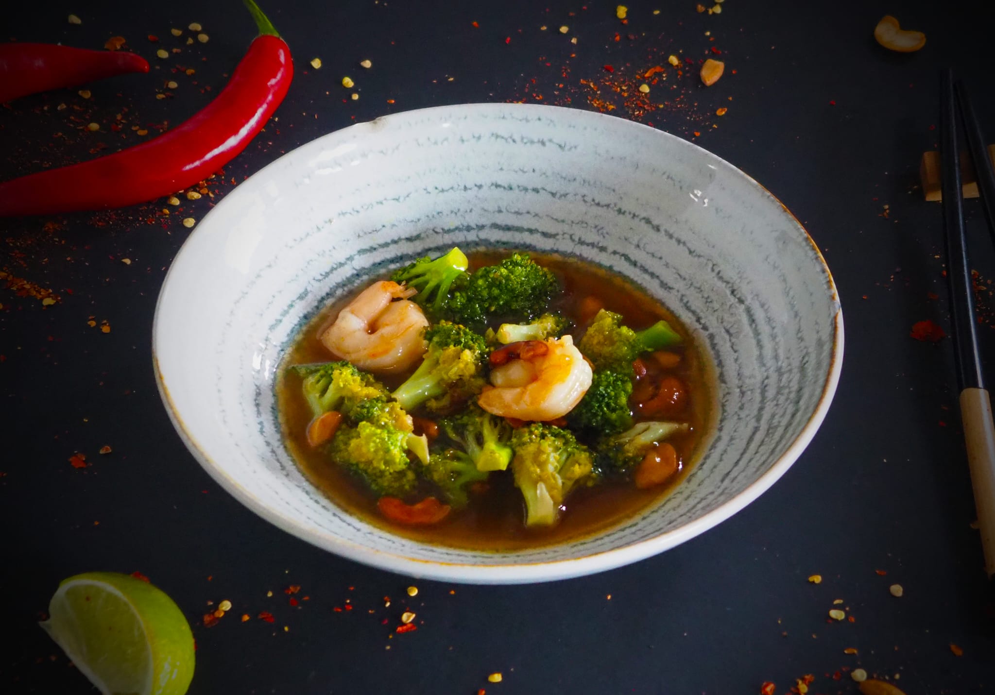 Broccoli și caju este un preparat tras la tigaie cu caju, broccoli și sos de stridii. Acesta se poate servi cu orez sau tăiței.