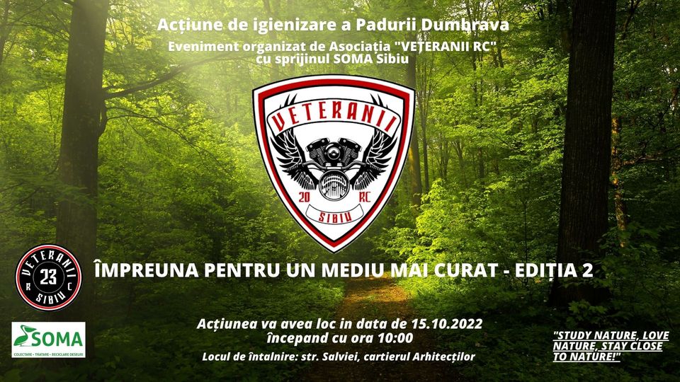 „Cât de mult respectăm natura?" Aflăm sâmbăta, in data de 15.10.2022, unde vă invităm de la cel mai mic până la cel mai mare. Cu acest prilej încercam în fiecare an să atragem atenția asupra comportamentului uman față de natura cât și importanța ocrotirii mediului înconjurător”, transmit Veteranii Riders Club, organizatorii evenimentului.