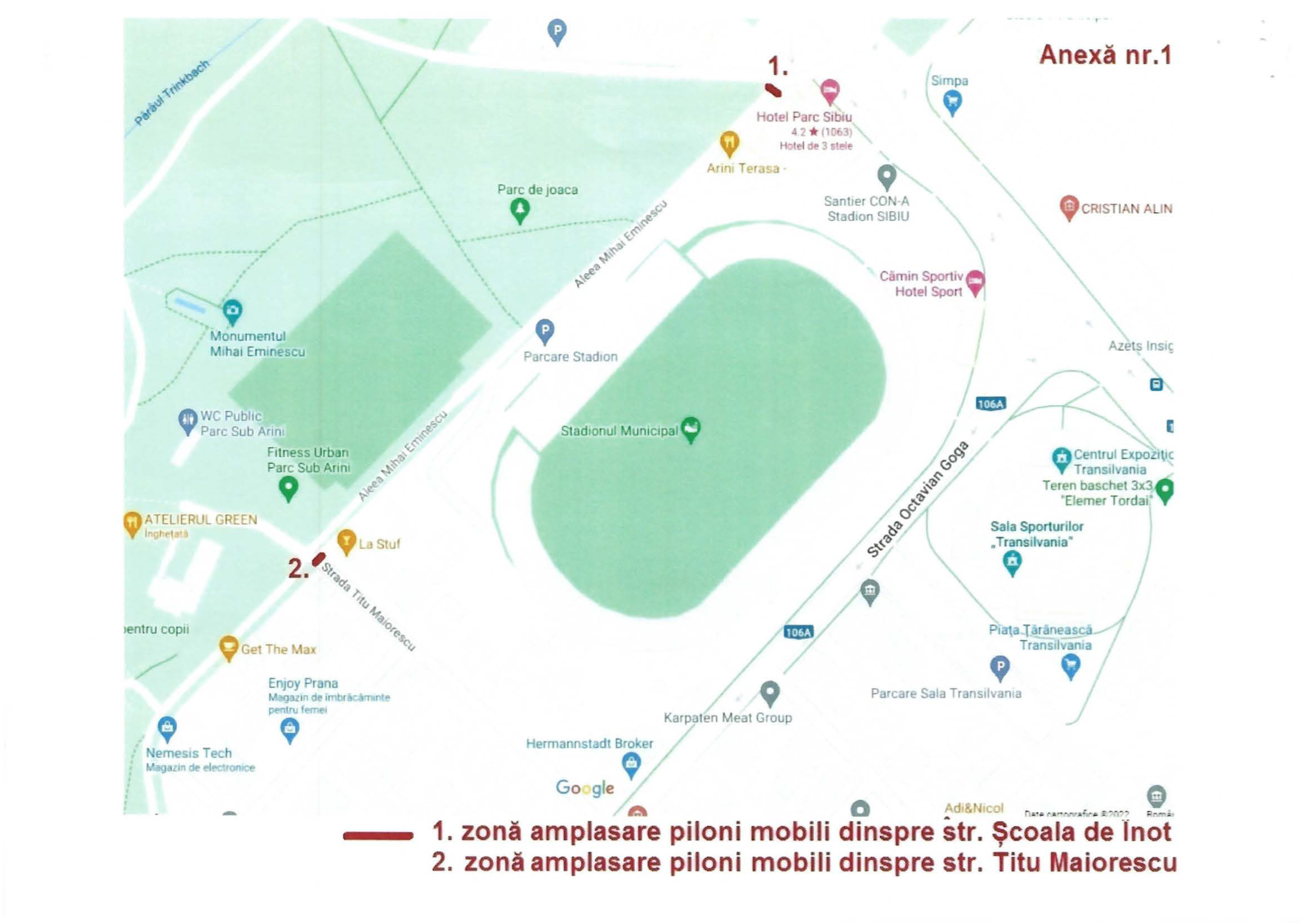 Primăria Sibiu a pus joi în dezbatere publică un Proiect de hotărâre pentru aprobarea Regulamentului privind reglementarea circulației autovehiculelor pe Aleea Mihai Eminescu din Municipiul Sibiu. Astfel, zona stadionului va deveni pietonală și se vor monta piloni la intrarea pe Aleea Mihai Eminescu dinspre Hotel Parc și strada Titu Maiorescu.