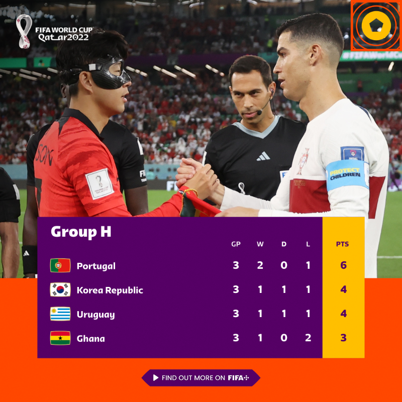 Golul coreenilor a adus însă lacrimi și în rândul suporterilor uruguaeni, acolo unde echipa lor juca contra Ghanei. Uruguai a încheiat partida cu victoria de 2-0, după o dublă a lui Giorgian de Arrascaeta, obținând același număr de puncte (4) împreună cu Coreea de Sud. Dar pleacă acasă din cauza golaverajului - sudamericanii mai aveau nevoie de un gol. Aceștia au aflat cu 10 minute înainte de final că asiaticii au înscris golul victoriei, forțând a treia lor reușită contra africanilor, ceea ce n-a venit.