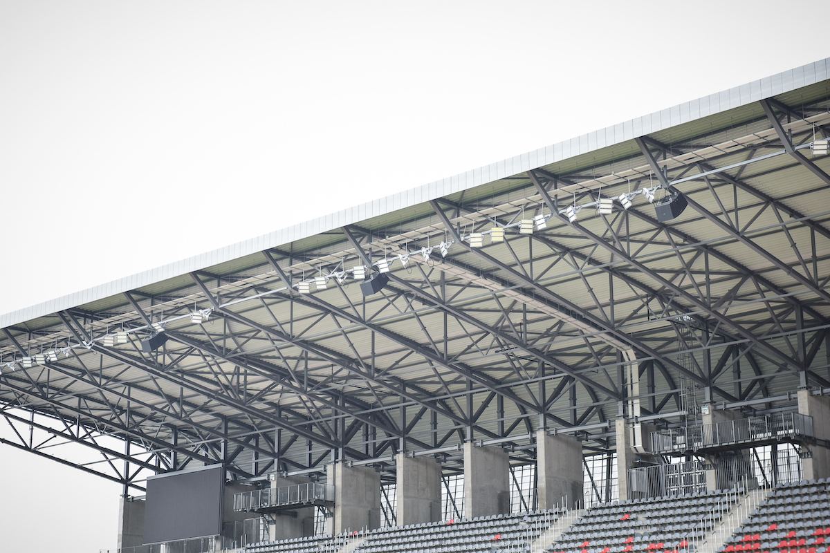 Noul stadion al Sibiului nu mai are acele ”turnuri de lumini”. Actualul sistem de iluminat are 112 proiectoare amplasate pe toate cele patru corpuri de clădire