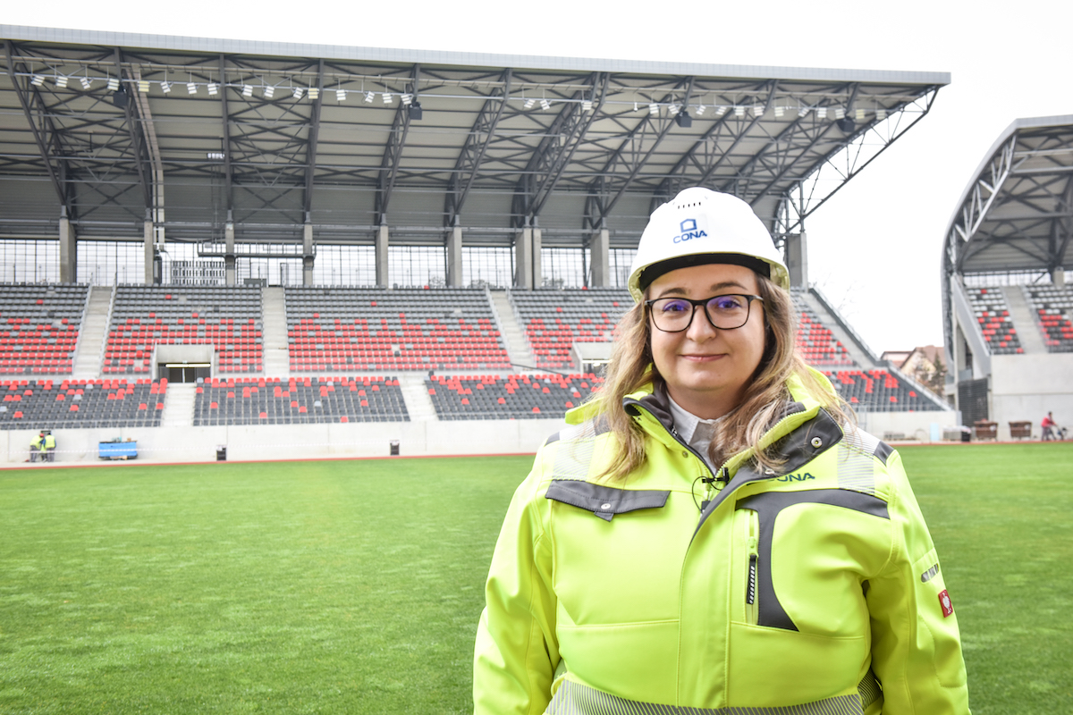 Carmen Olteanu, managerul de proiect, este, de asemenea, sibiancă. ”Speram să ajung să lucrez aici. Când mi s-a spus direct - «stadionul de la Sibiu» - am fost foarte fericită. De atunci mi se pare că am avut atâtea provocări încât n-am mai avut timp să mă gândesc la bucuria acelui moment. A fost un proiect destul de complex, cu foarte multe provocări pe partea de aprovizionare și de comenzi de materiale”, descrie Carmen Olteanu.