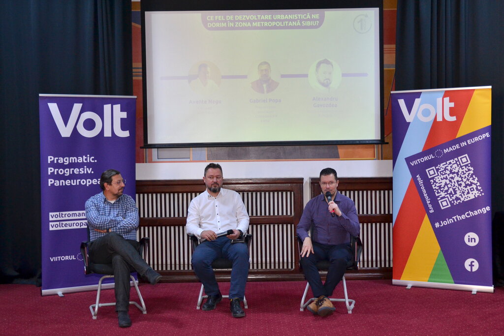 Axente Neagu, co-președinte Volt Sibiu, a fost cel care a moderat evenimentul.