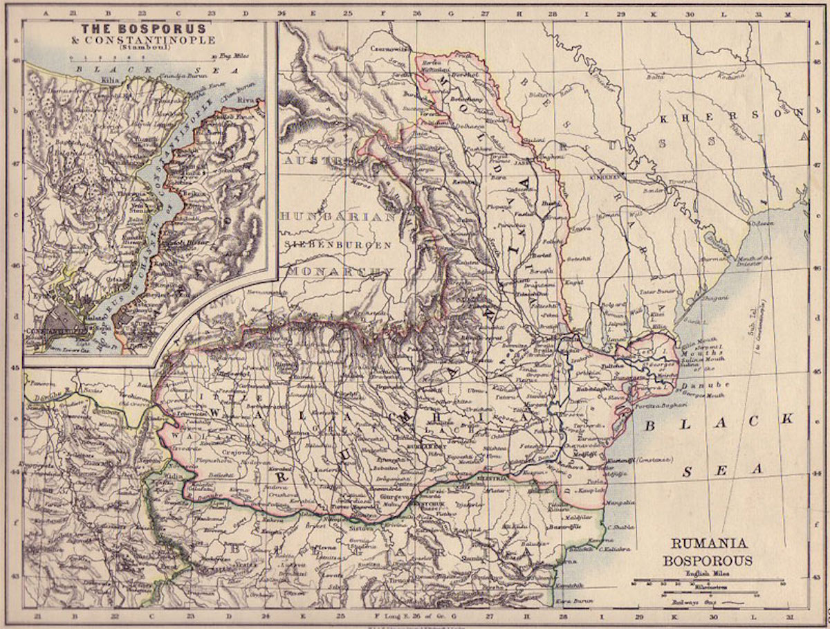 Harta României - anii 1870 - Una dintre primele hărți care apar într-un atlas britanic cu denumirea oficială suprapusă peste "Moldova" și "Muntenia". Sursa foto: roconsulboston.com