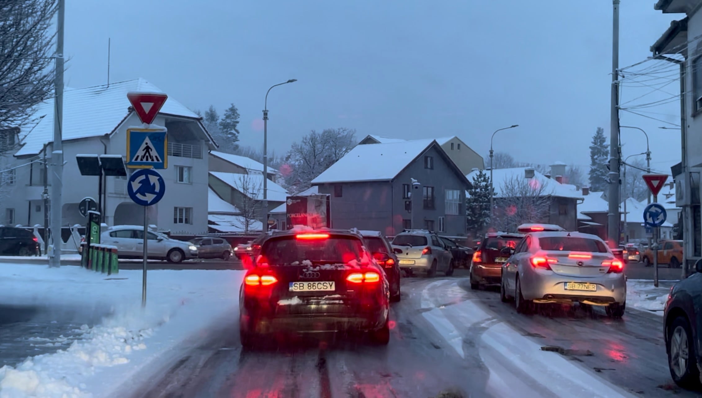 Un drum între Șura Mică și centrul orașului care, deobicei, durează între 15 și 20 de minute s-a întins pe 45 de minute în această dimineață. Pe Calea Șurii Mici s-a circulat destul de greu, carosabilul nefiind curățat. De la intrarea din oraș se circulă bară la bară, aproape prin tot orașul.