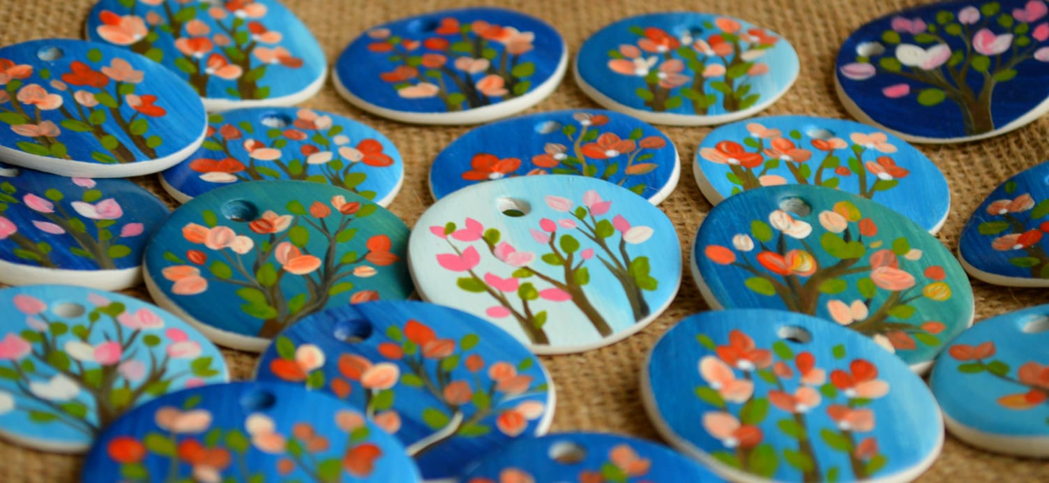 „Mă folosesc de lut și felii subțiri de lemn, pe care încerc să surprind frumusețea diferitelor tipuri de flori ce ne bucură inimile, odată cu venirea primăverii, iar pentru că le purtăm la piept, în partea stângă, le-am numit Bucurii de pus la inimă. Pasiunea pentru pictură și bucuria pe care o aduc oamenilor cântăresc mai mult decât câștigul financiar, așa că prețurile mărțișoarelor mele sunt cuprinse între 5 și 10 lei”, spune Georgiana.
