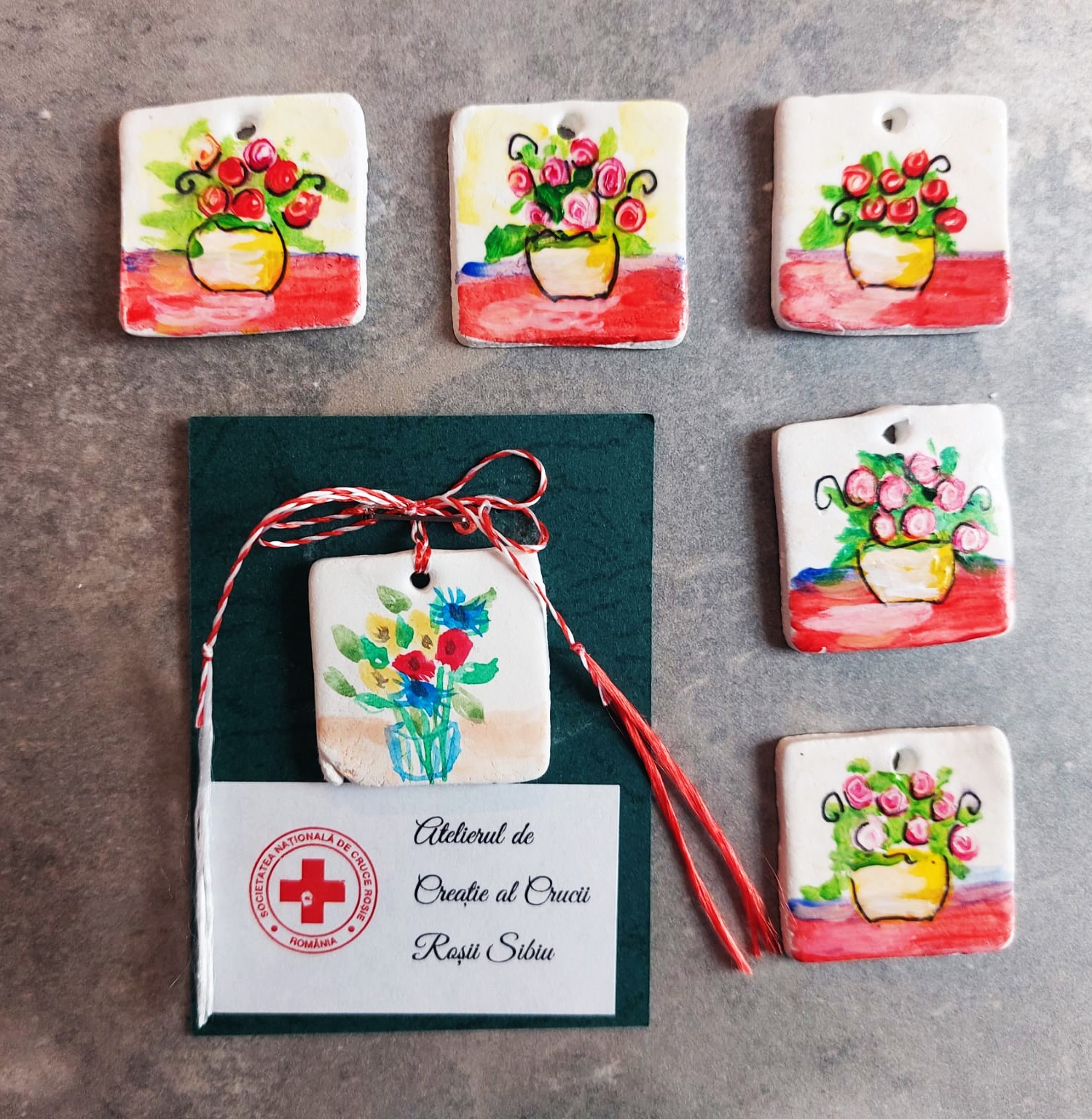 Atelierul de Creație al Crucii Roșii Sibiu pune la dispoziția sibienilor zeci de modele de mărțișoare caritabile. Toate sunt lucrate manual de voluntari și pe lângă ajutorul financiar pentru filiala Crucii Roșii Sibiu, realizarea lor constituie o mare bucurie de întâlnire și ore întregi de terapie prin artă pentru pensionarii din Clubul de Aur.