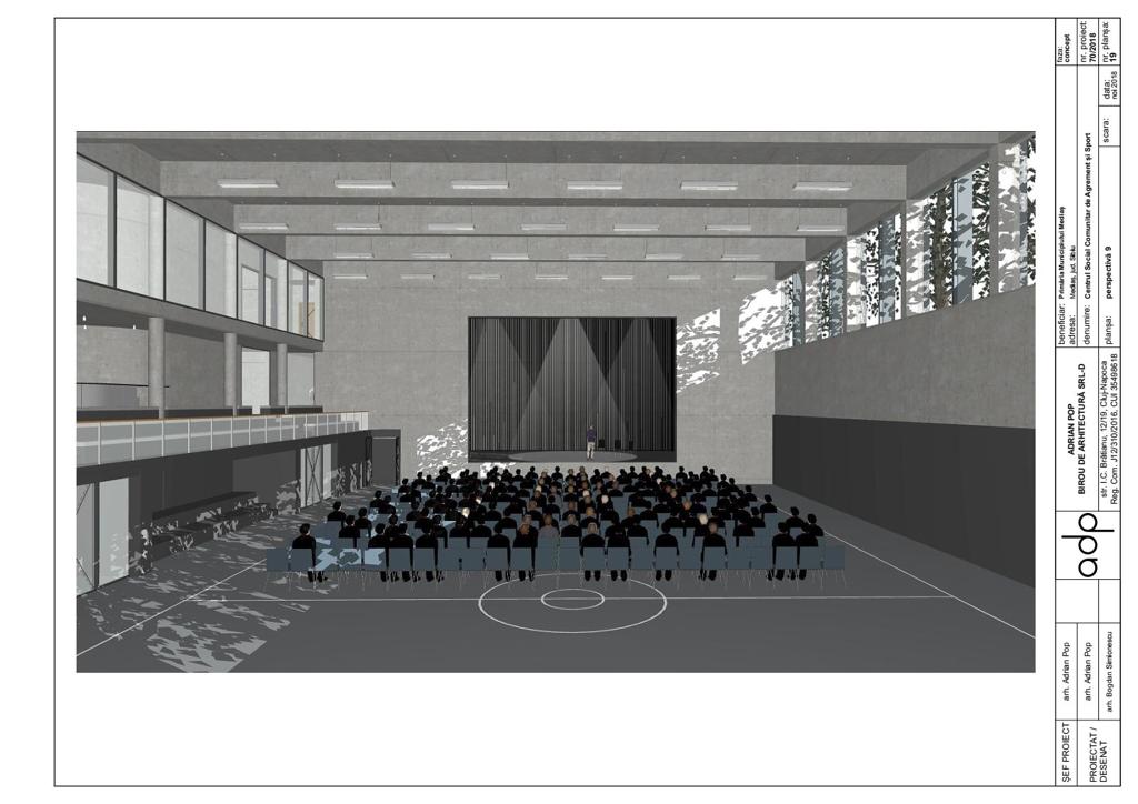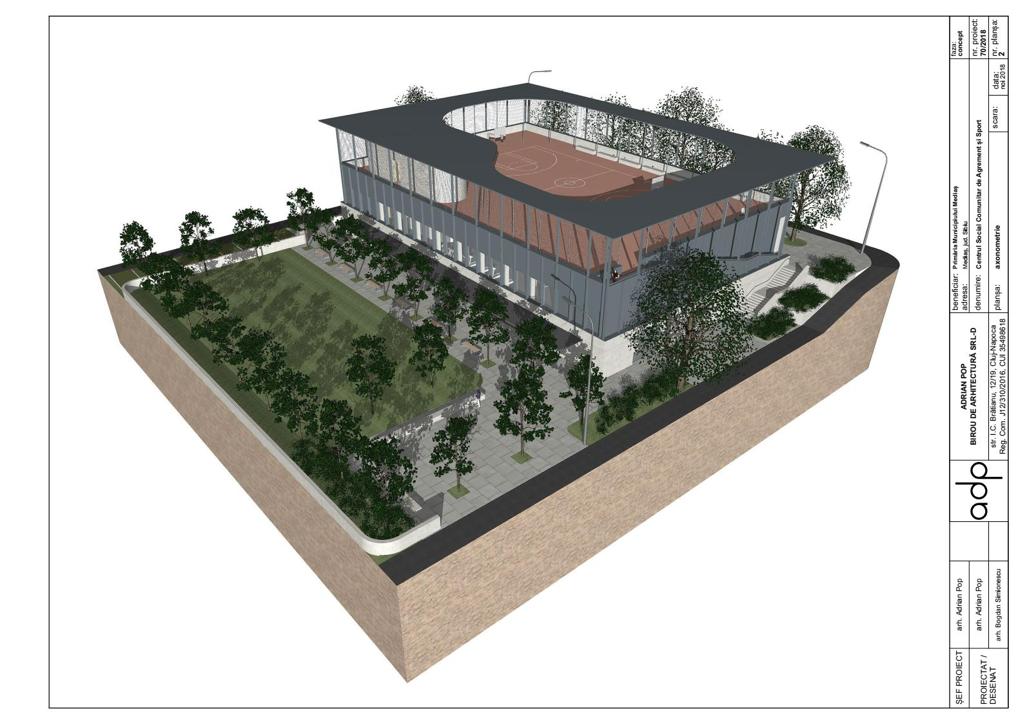 - Construirea unei săli de sport cu capacitate maximă de 265 de persoane, respectiv 200 locuri în gradene;