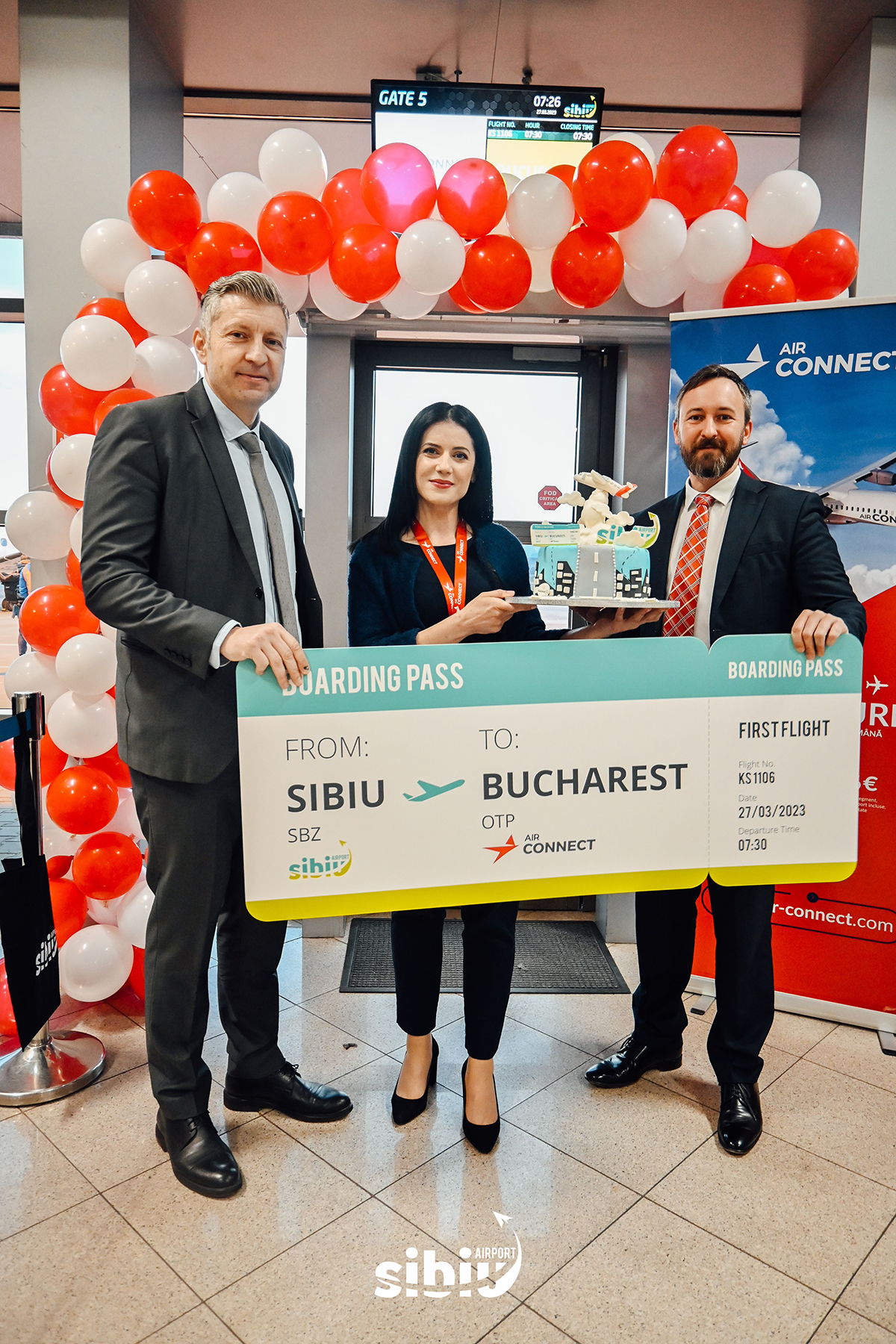 „Suntem fericiți să operăm astăzi primul zbor regulat pe ruta București – Sibiu – București. Sperăm că cele 5 frecvențe săptămânale pe care le oferim să satisfacă nevoile tuturor pasagerilor, atât celor care călătoresc în interes de afaceri, cât și turiștilor, AirConnect fiind o alternativă de călătorie rapidă, confortabilă și sigură, durata de zbor fiind de doar 50 de minute.”, a declarat Tudor Constantinescu, Director General AirConnect.