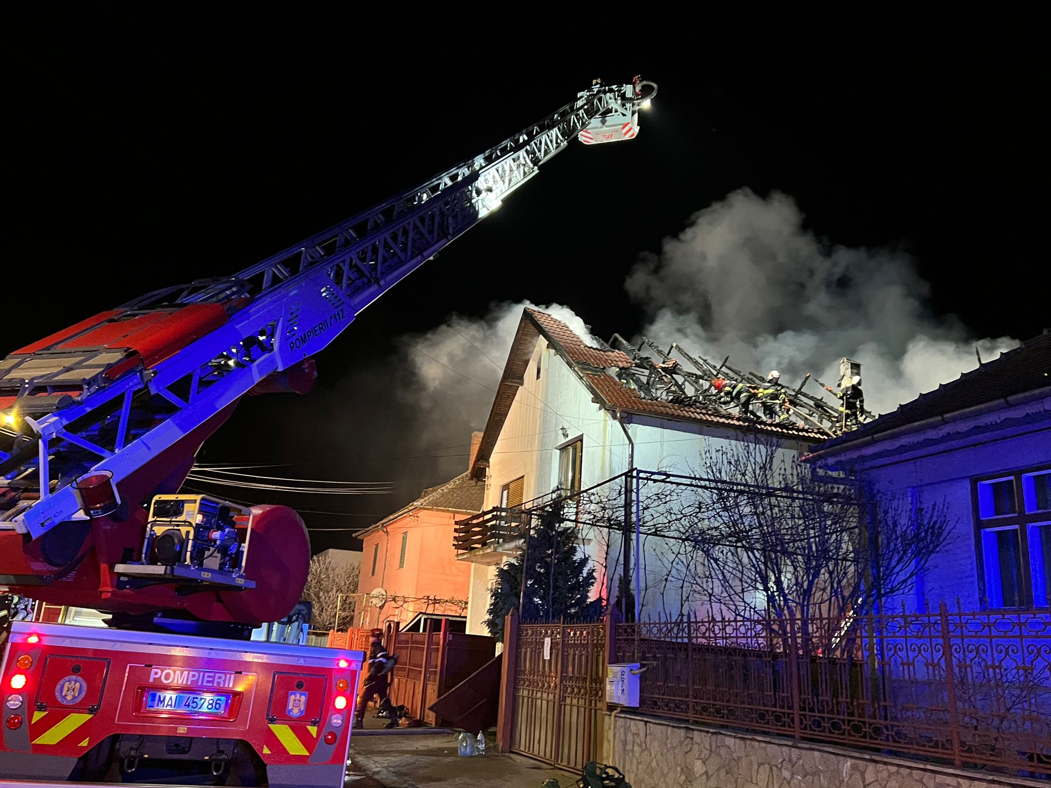Un incendiu izbucnit în noaptea dintre duminică și luni, în jurul orei 1 a distrus acoperișul și mansarda unei case de pe strada Alexandru Vlahuță.
