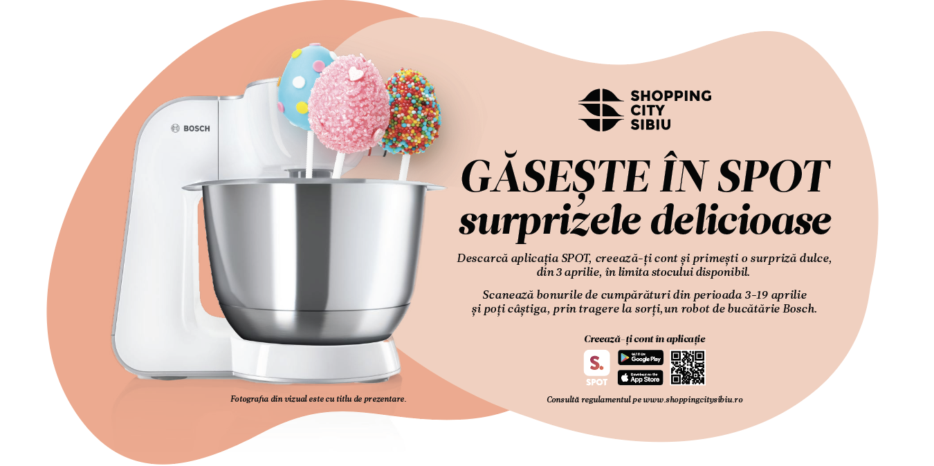 Clienții care descarcă aplicația mobilă SPOT și își completează contul în perioada 3-19 aprilie vor primi garantat un cadou dulce pentru masa de Paște, pe care îl pot ridica de la Info Desk.
