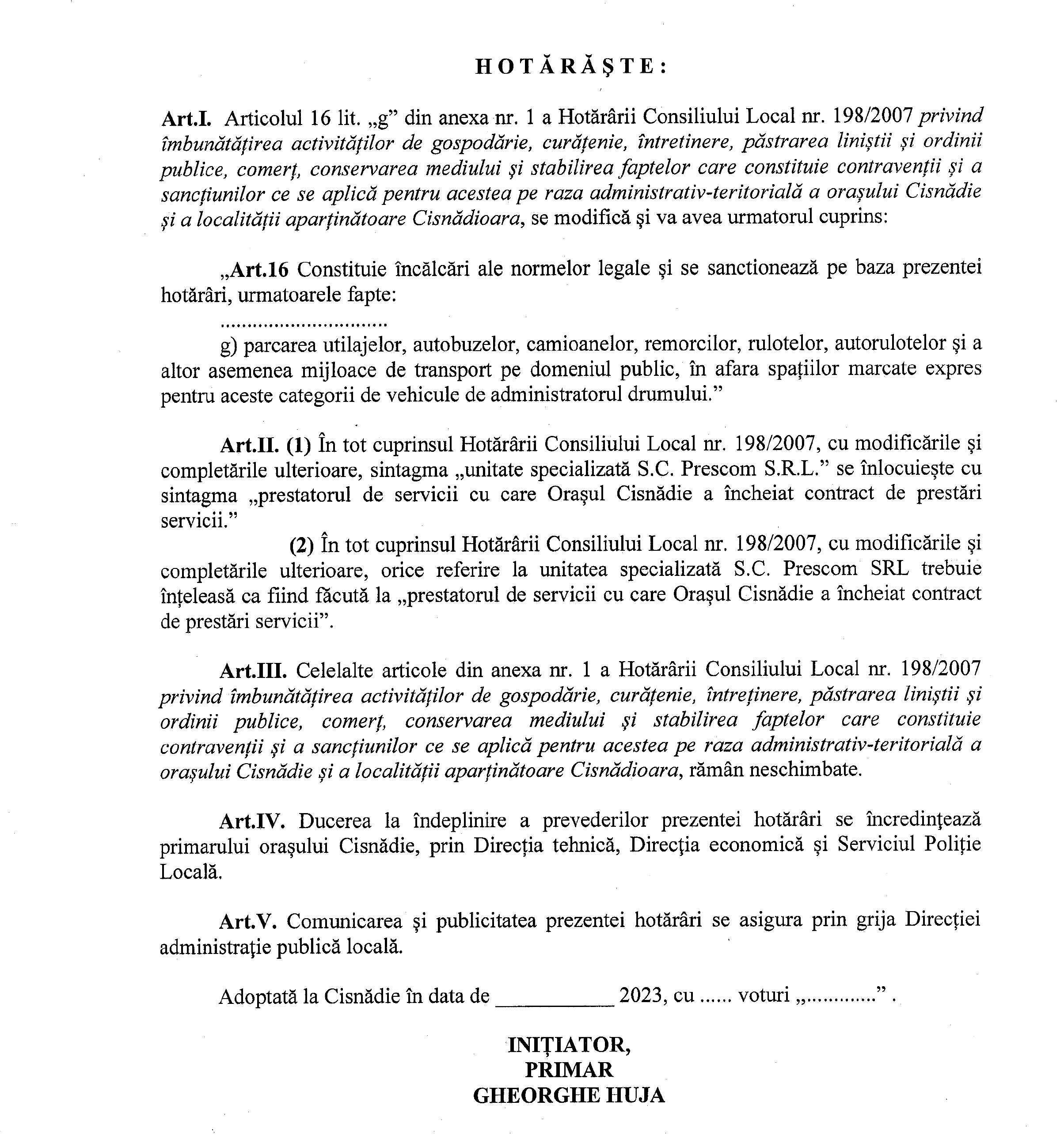 Proiectul care a stârnit discuții este afișat în transparență decizională pe site-ul Primăriei Cisnădie din data de 20 martie. Acesta poate fi consultat în întregime aici.