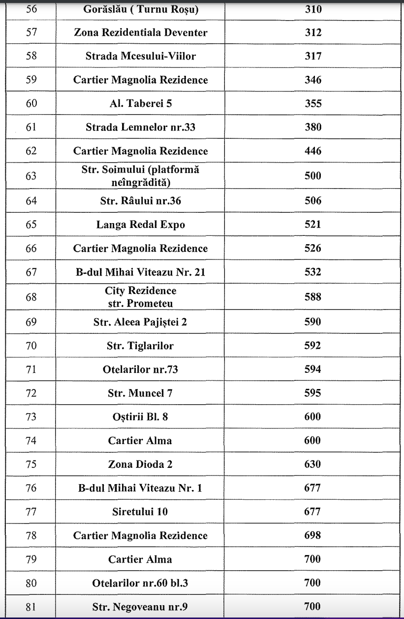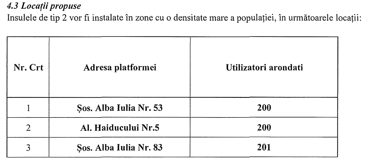 Tot în cadrul studiului de oportunitate sunt stabilite și 90 de locații unde vor fi amplasate viitoarele insule ecologice, precum și numărul de utilizatori arondați fiecărei platforme.