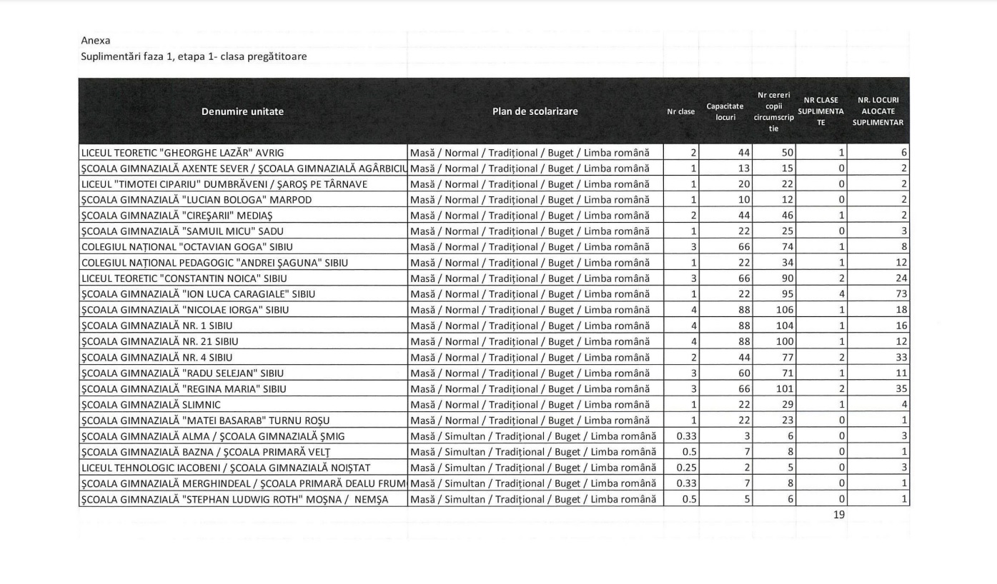 19 clase cu 273 de locuri au fost aprobate de Inspectoratul Școlar Județean Sibiu pentru a răspunde adreselor de solicitare cu privire la suplimentarea locurilor pentru înscrierea copiilor în învățământul primar. Cu alte cuvinte și în anul viitor școlar mai multe unități școalre din Sibiu vor fi supradimensionate.