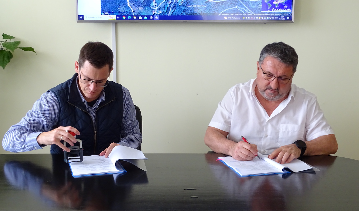 Vasile Maier (dreapta) spune că lucrările din cadrul contractului semnat luni vor începe, mai întâi, în zona Cisnădie - Cisnădioara
