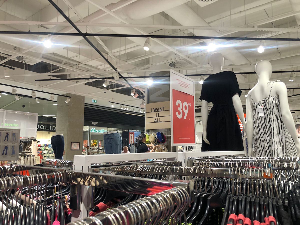 Tot la H&M, o ținută alcătuită din trei piese, tricou, pantaloni scurți și încălțăminte, costă 47 de lei. Dacă înlocuim pantalonii și tricoul cu o rochie redusă la 30 de lei, vom plăti mai puțin, adică 41 de lei.