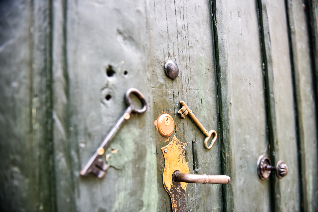 2. Ușa verde cu chei - porțile de pe strada Brutarilor, numărul doi au ceva deosebit. Lângă încuietoare putem observa ca detalii două chei lipite. Nu au o valoare istorică, fiind alegerea proprietarului de a face acest artificiu estetic;