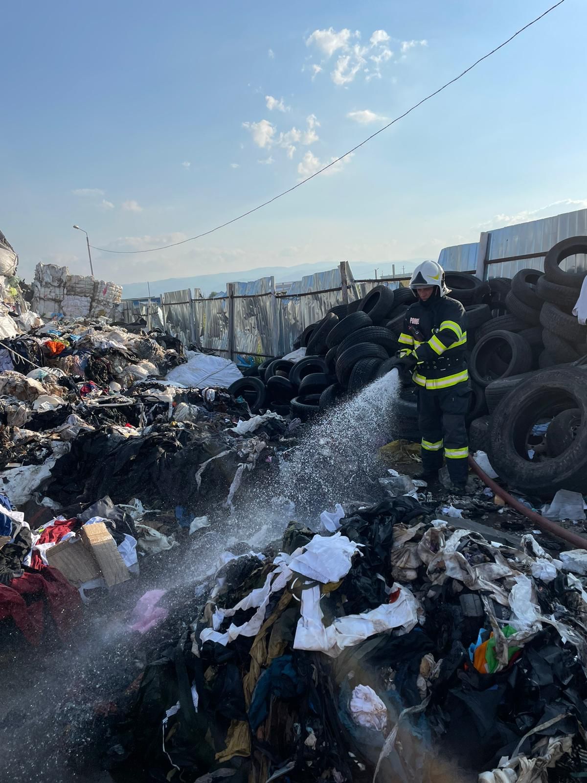 „Pompierii au constatat că degajările de fum provin de la mici focare de ardere mocnită, fără flacără, de la baza stivei de aproximativ 15 tone de deșeuri textile, fără risc de propagare”, mai transmite Sergentul major.