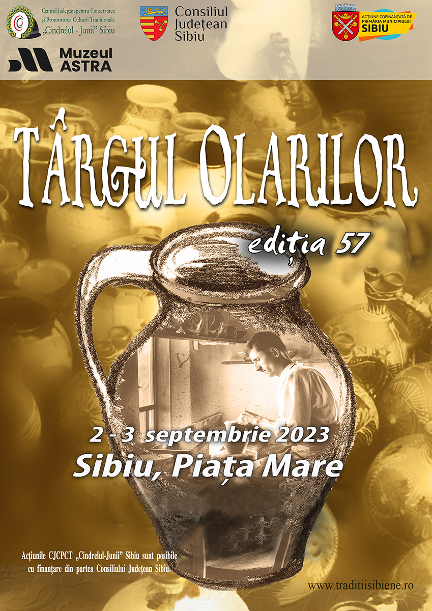 De peste 5 decenii, toamna aduce olarii în centrul Sibiului, la cel mai longeviv eveniment cultural al orașului: Târgul Olarilor. Astfel, în 2 și 3 septembrie 2023, în Piața Mare, meșteri olari din întreaga țară aduc spre vânzare produse atent meșteșugite. Totodată, ne invită să fim parte din povestea olăritului, prin demonstrațiile și atelierele practice. Cea de-a 57-a ediţie a manifestării este organizată de Consiliul Județean Sibiu, Centrul Judeţean pentru Conservarea şi Promovarea Culturii Tradiţionale „Cindrelul-Junii” Sibiu, în parteneriat cu Muzeul ASTRA, fiind o acțiune cofinanțată de Primăria Municipiului Sibiu.