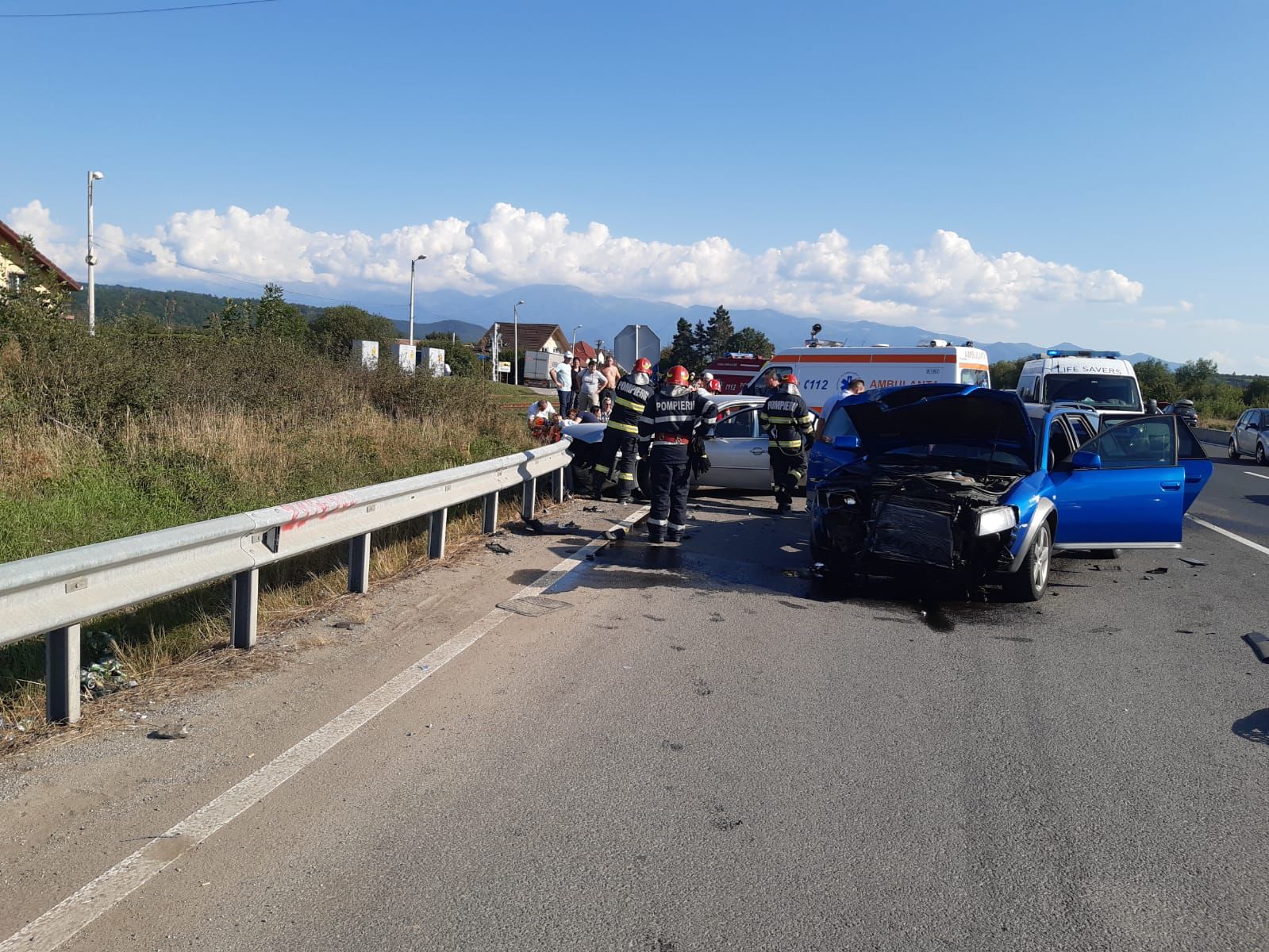 Patru persoane au fost rănite în urma unui accident provocat duminică după amiaza de o femeie care a virat la stânga, pe DN 1, în zona Veștem, fără să acorde prioritate. Toți răniții sunt din mașina condusă regulamentar.