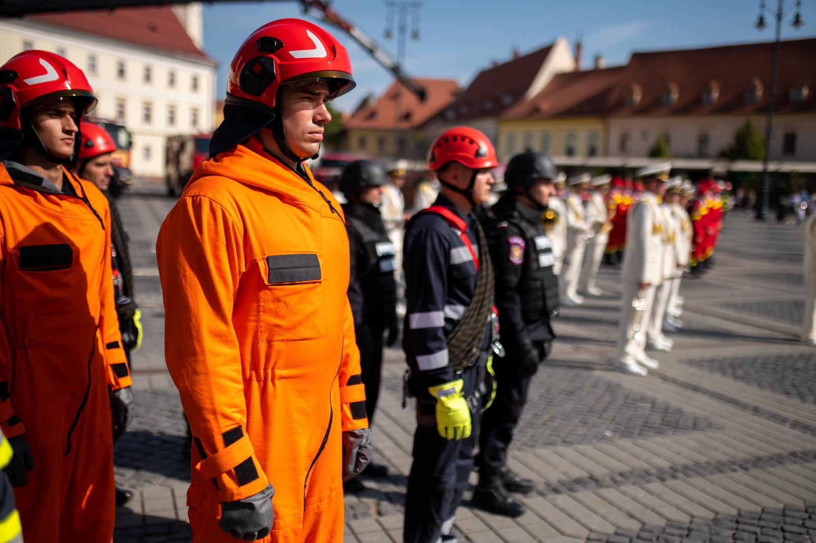Cu această ocazie, sibienii au putut să vadă îndeaproape mașinile pompierilor, să se fotografieze cu pompierii și să povestească cu ei. La ora 11 a început ceremonia din Piața Mare, la care plutonierul adjutant Nagy Marius a primit titlul de pompierul anului 2023.