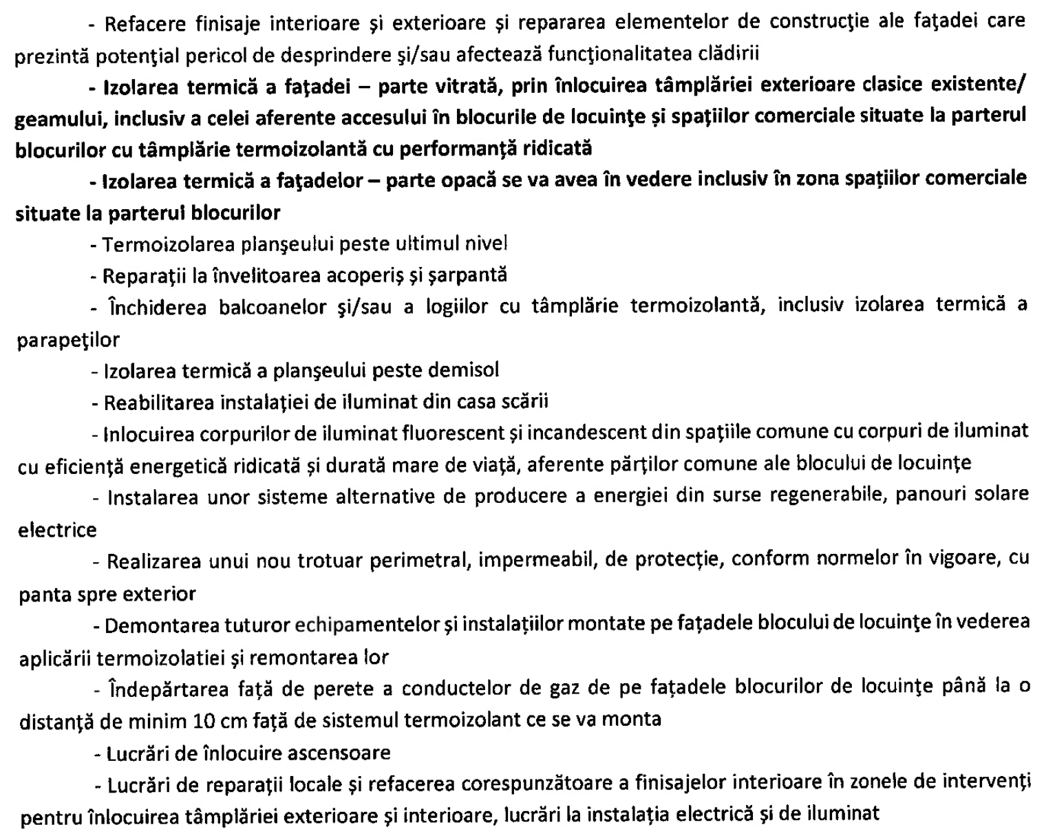 În ceea ce privește lucrările efectuate, pe lângă intervențiile la acoperișurile clădirilor sau înlocuirea ascensoarelor, vor fi efectuate o serie întreagă de lucrări: